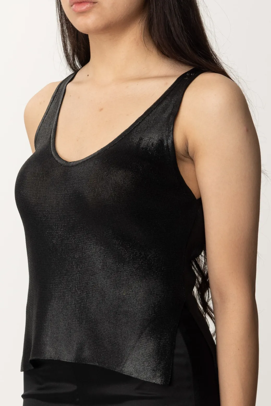 Top Elisabetta Franchi realizzato in viscosa lucida, perfetto per i tuoi outfit da night out. Audace grazie alla profonda scollatura, il tocco shiny sarà ideale per illuminare i tuoi look total black. Gli spacchetti laterali ammorbidiscono il fit, che si presenta così svasato dal seno in giù. Ci piace? Eh sì !