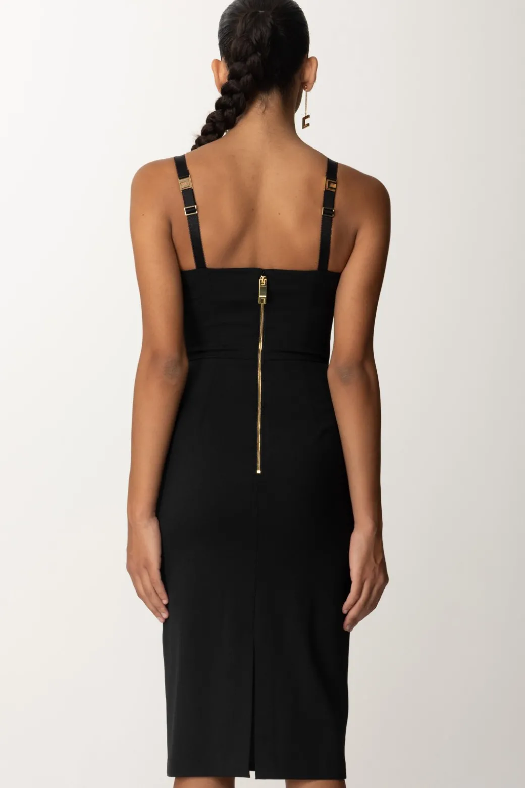 Ad ogni stagione i suoi: e questa collezione aggiunge alla sua lista dei must-have questo abito tubino Elisabetta Franchi realizzato in fresco lana mélange, con scollo curoe e tagli sul busto e in vita che definiscono al meglio la silhouette. Una mide da completare con un blazer, anche crop, e un bel paio di tacchi per completare la sua allure classy e business.