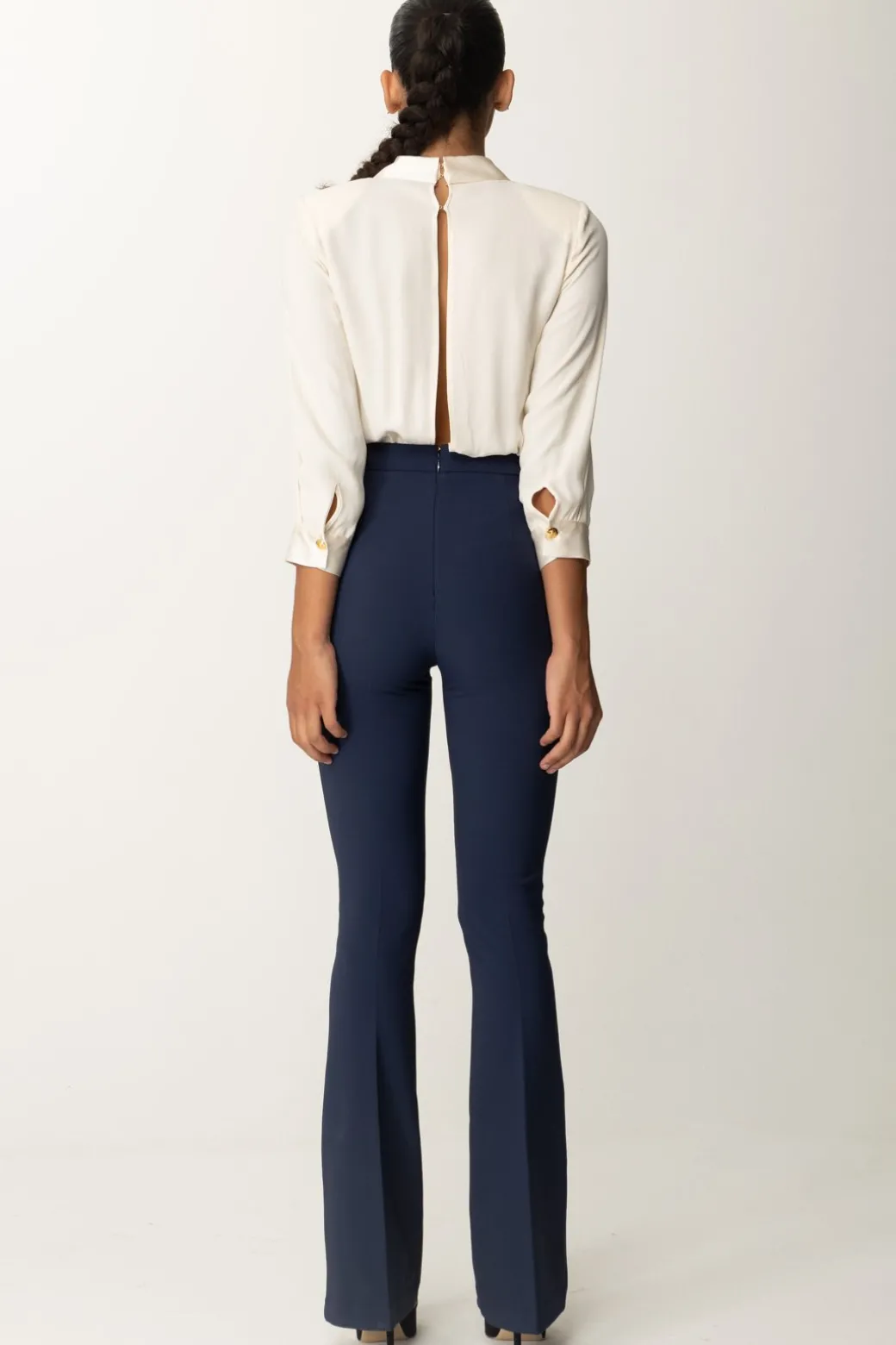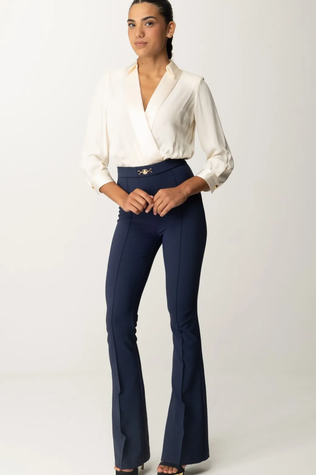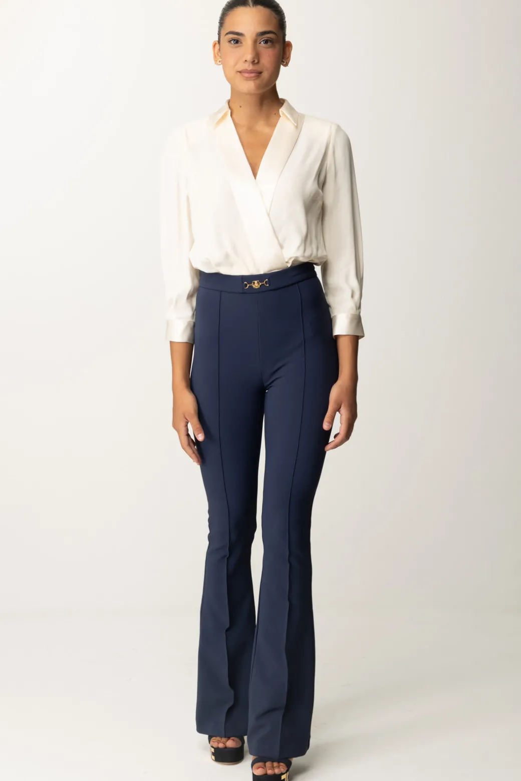 Eleganza senza tempo caratterizza questa tuta Elisabetta Franchi con camicia incrociata in doppia georgette e pantaloni dritti leggermente svasati in crêpe stretch. Ad aggiungere l’ultimo tocco di lusso ed eleganza ci pensa il piccolo logo dorato sul fascione in vita.