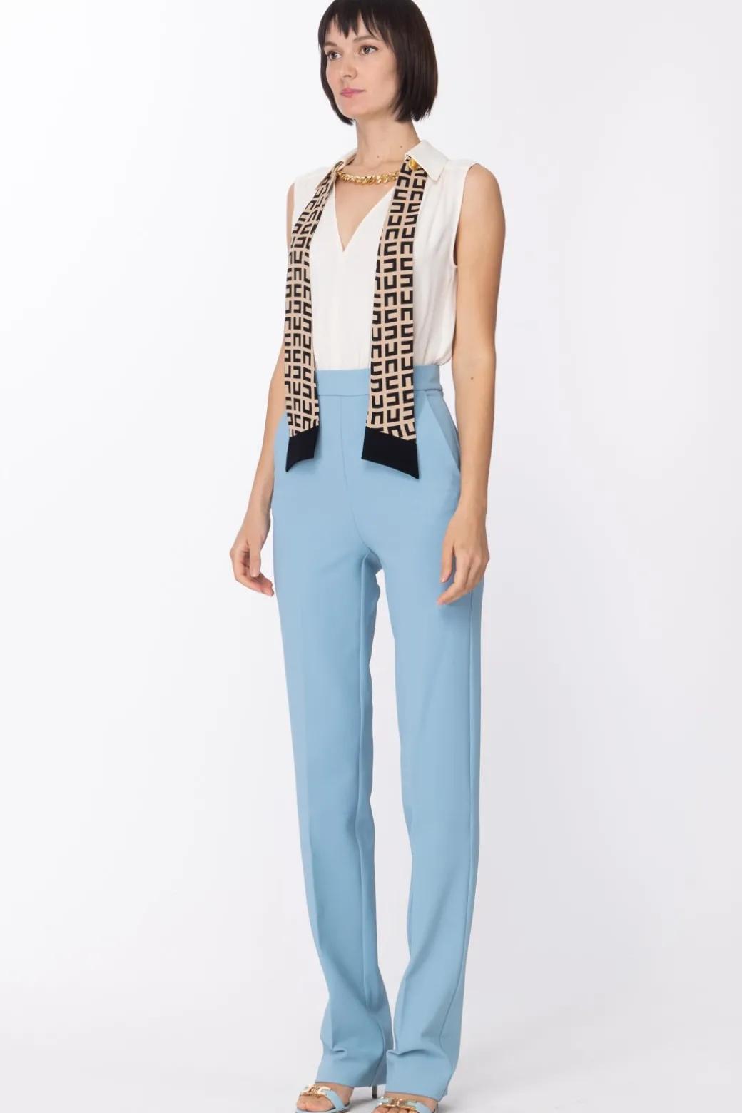 Elisabetta Franchi Tuta Lunga con Foulard e CatenaBURRO/CARTA DA ZUCCHERO