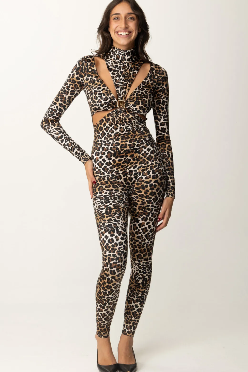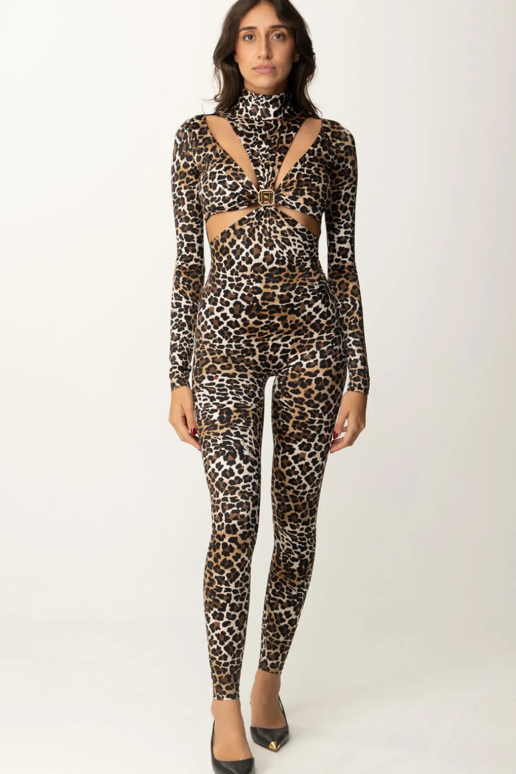 Libera il tuo lato selvaggio con questa tuta Elisabetta Franchi in lycra dalla stampa animalier, cutout e fit aderente che trasmette un fascino bold ed eccentrico. Lascia che lei sia la protagonista, mantenendo gli accessori al minimo e abbinandola a tacchi neri per un look d’impatto.