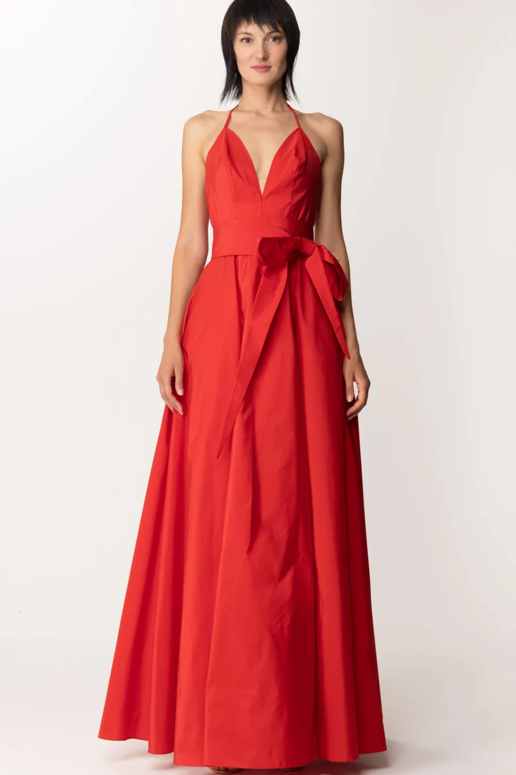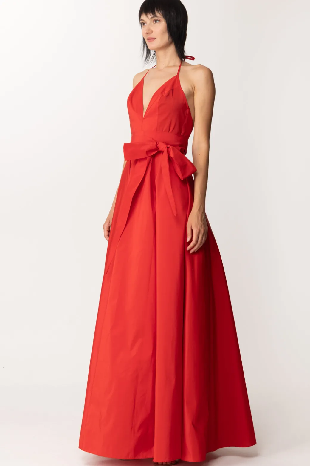 Fabiana Ferri Abito Lungo Elegante In Taffetà con Scollatura ProfondaROSSO