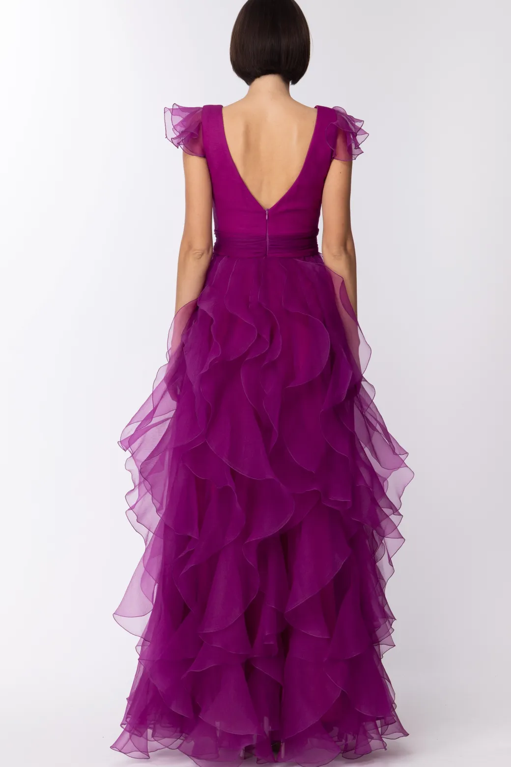 Fabiana Ferri Abito Lungo Scollo a V con Volant VerticaliVIOLET
