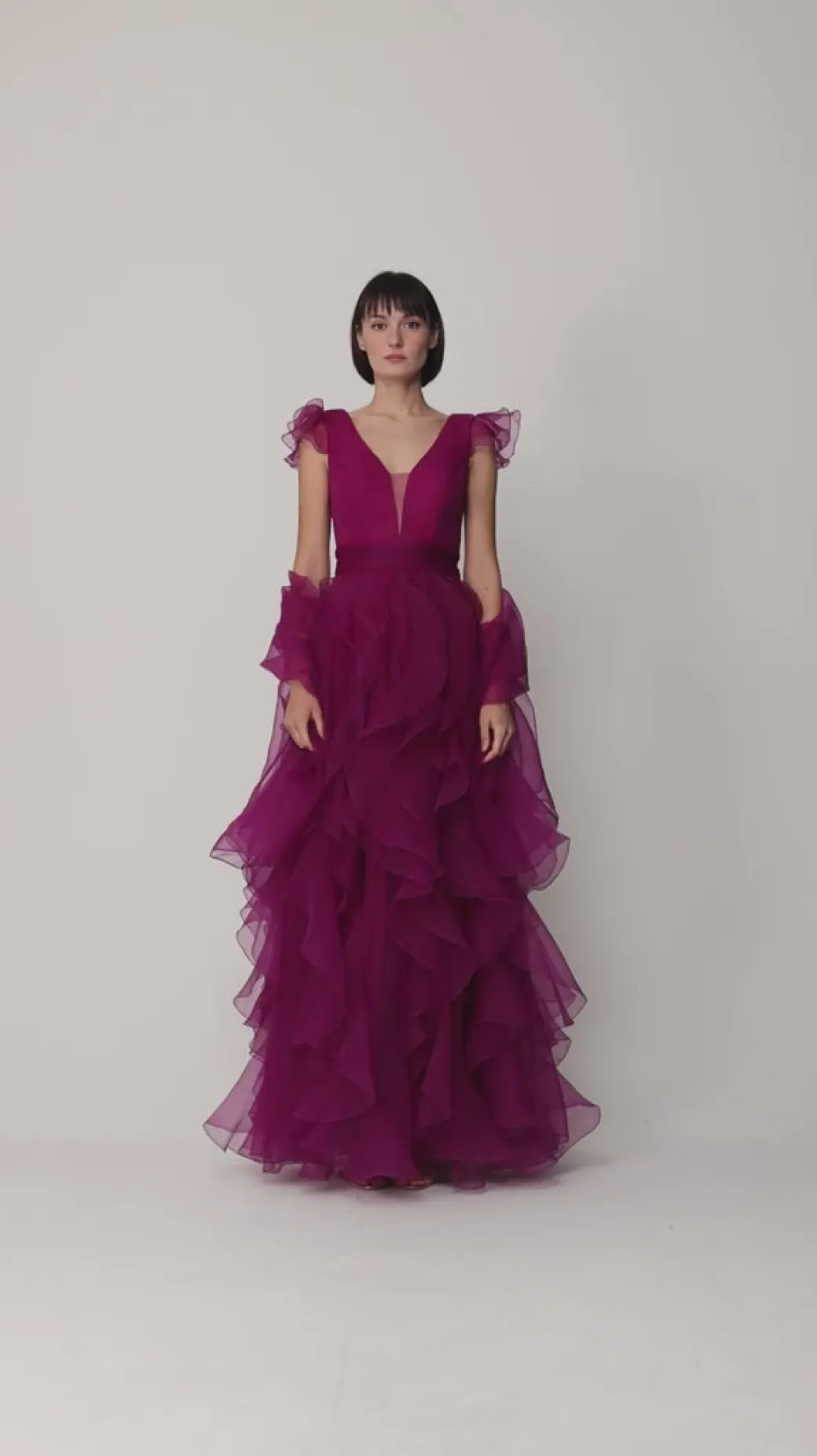 Be the first to review “Fabiana Ferri Abito Lungo Scollo a V con Volant VerticaliVIOLET” Annulla risposta