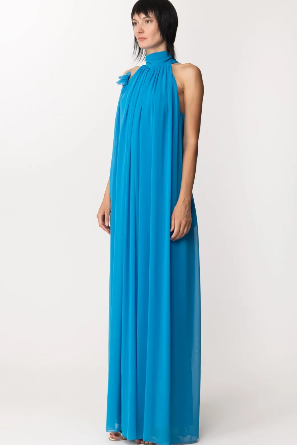 Fabiana Ferri Tuta Plissettata con Scollo All’americanaTURCHESE