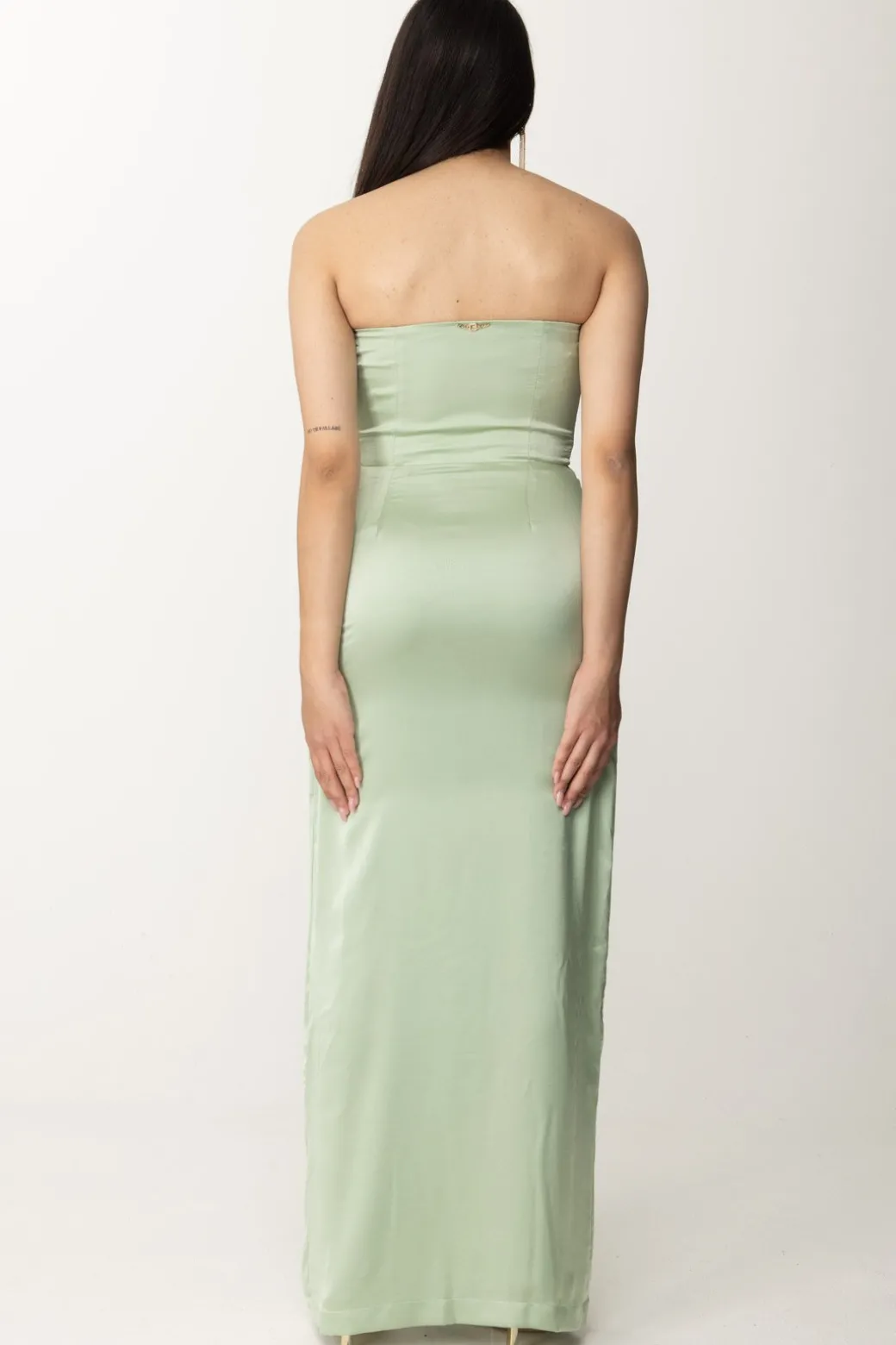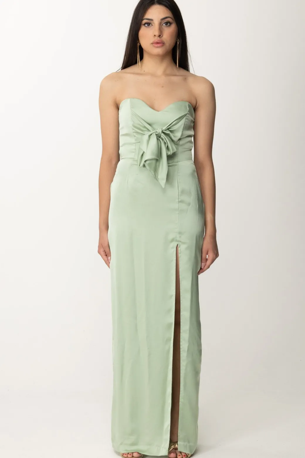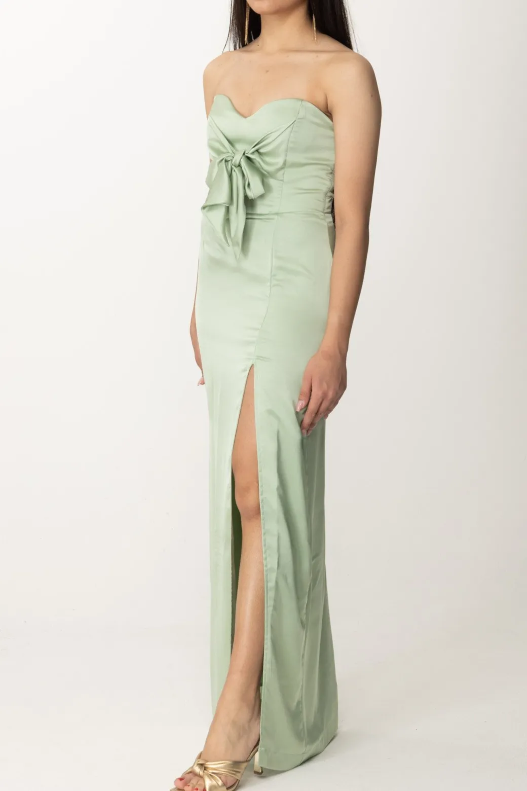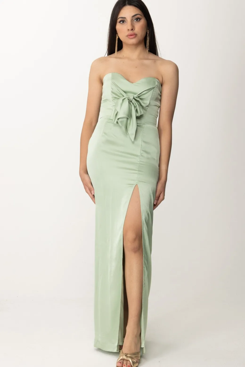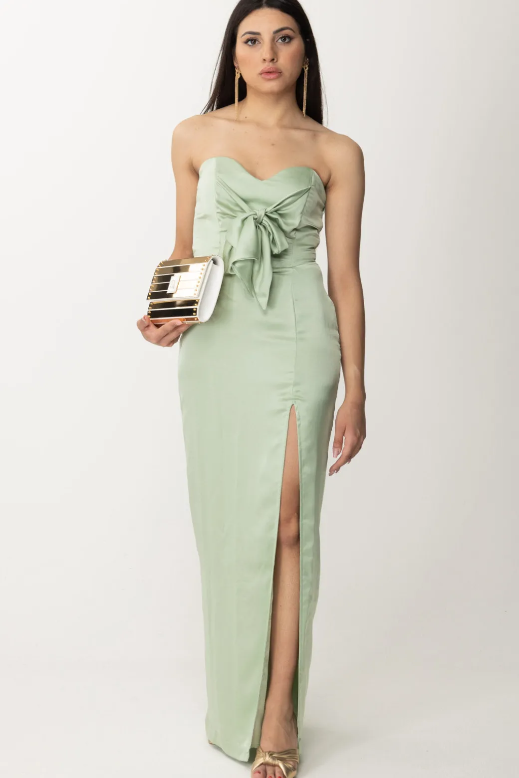 Questo abito Gaelle Paris in satin è una dichiarazione di eleganza e sensualità. Lo scollo a cuore con dettaglio di nodo sul davanti aggiunge un tocco romantico e femminile. Il fit aderente esalta la silhouette, mentre il profondo spacco frontale conferisce un tocco di allure sofisticata.
