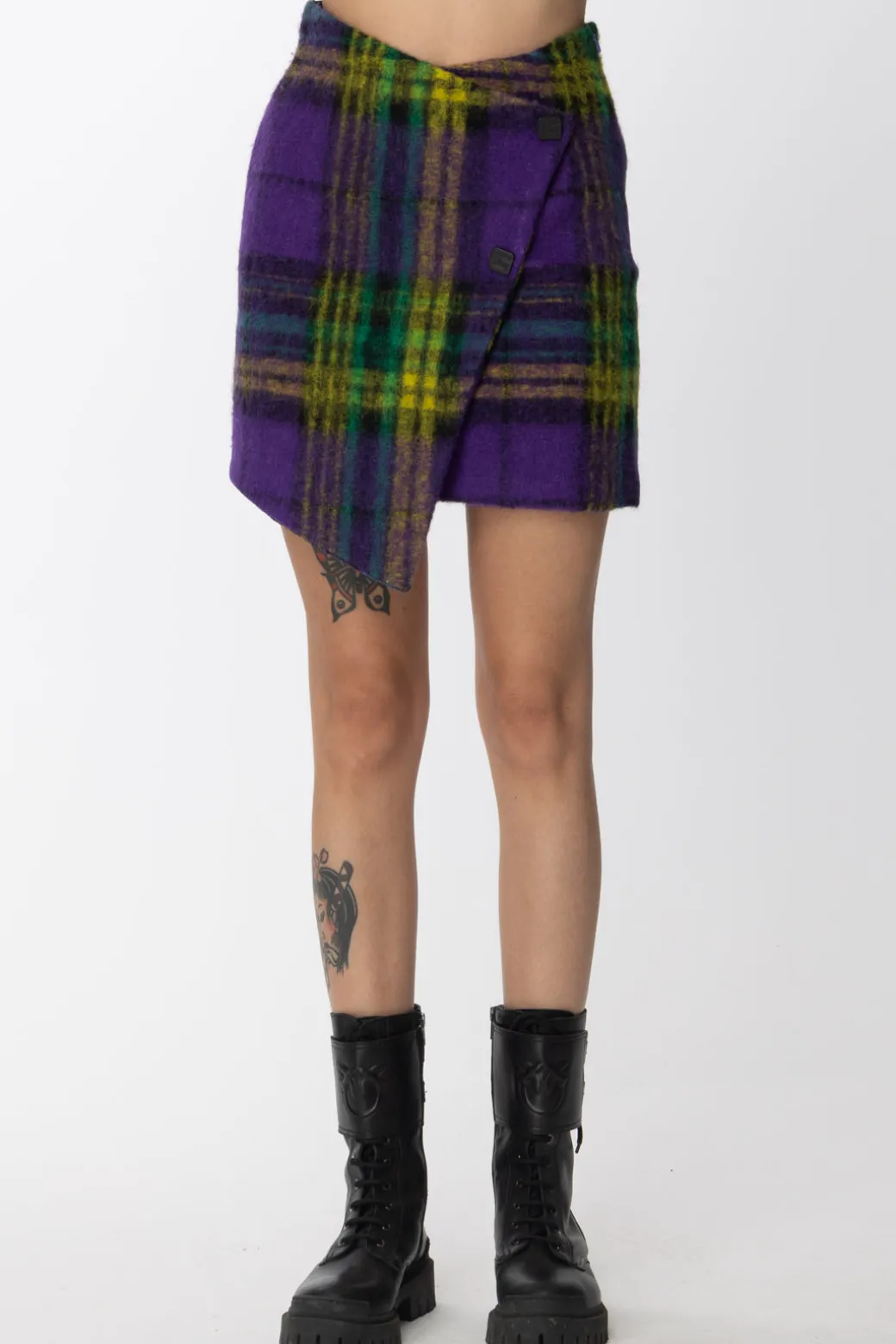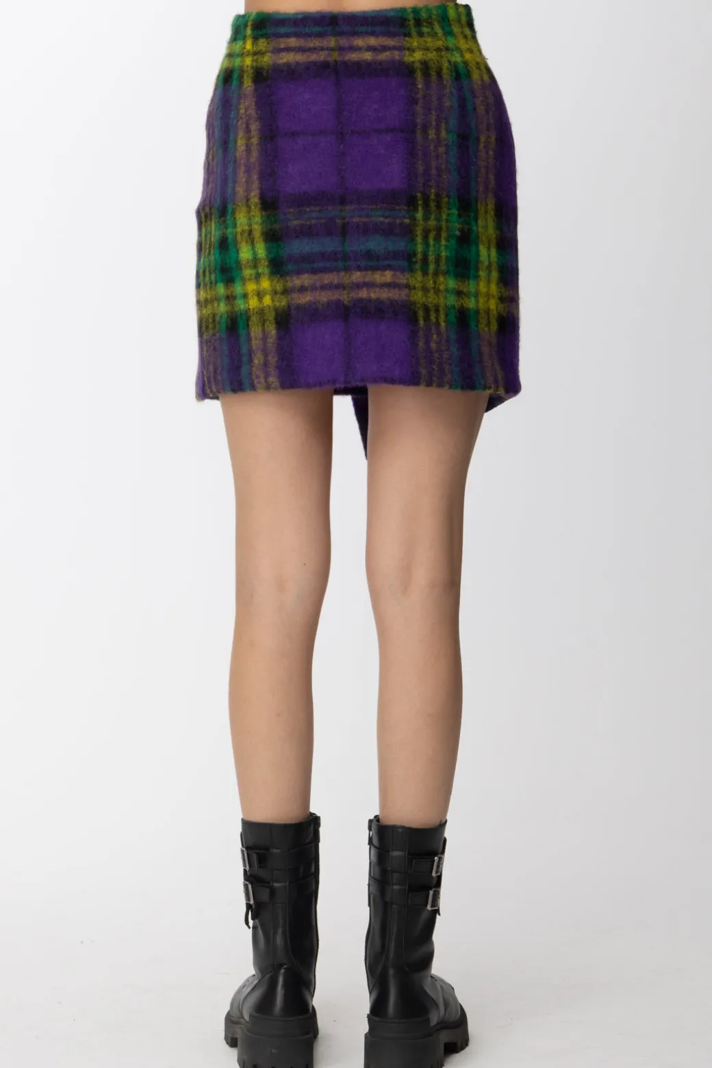 Gonna Gaelle Paris realizzata in panno con un design a portafogli asimmetrico e un motivo check multicolor. I suoi colori vivaci e brillanti conquisteranno il tuo animo da fashionista trendy e originale!