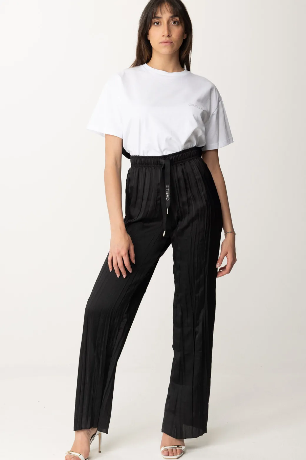 Pantaloni Gaëlle Paris dal design plissettato e morbido, ideale per essere indossati tutti i giorni per la perfetta combo di stile e comodità. La coulisse in vita è impreziosita da logo in strass per un tocco di luce irresistibile!