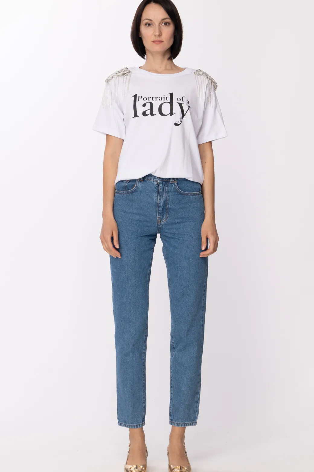 Gaëlle Paris T-shirt con Stampa e Spalline GioielloBIANCO
