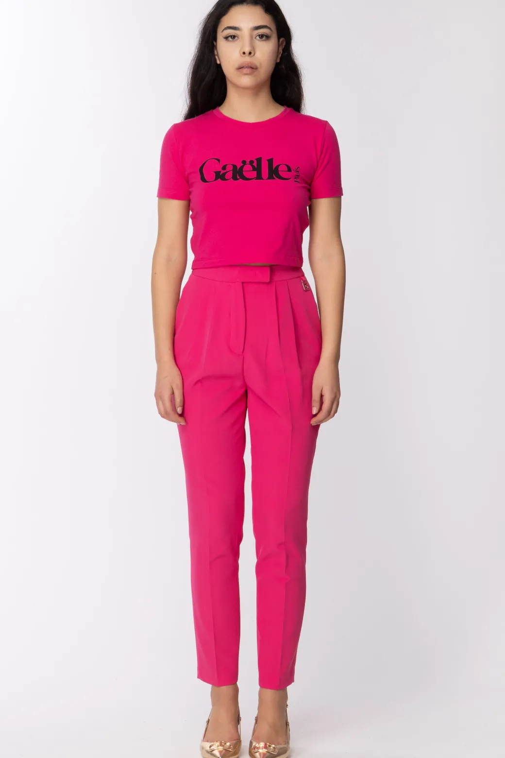 Gaëlle Paris T-shirt Cropped con Stampa LogoFUCSIA