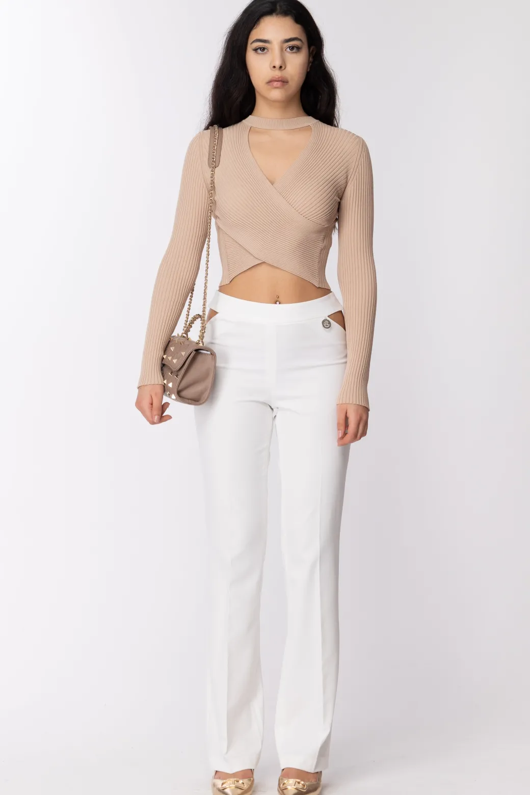 Gaëlle Paris Top a Costine IncrociatoBEIGE SABBIA
