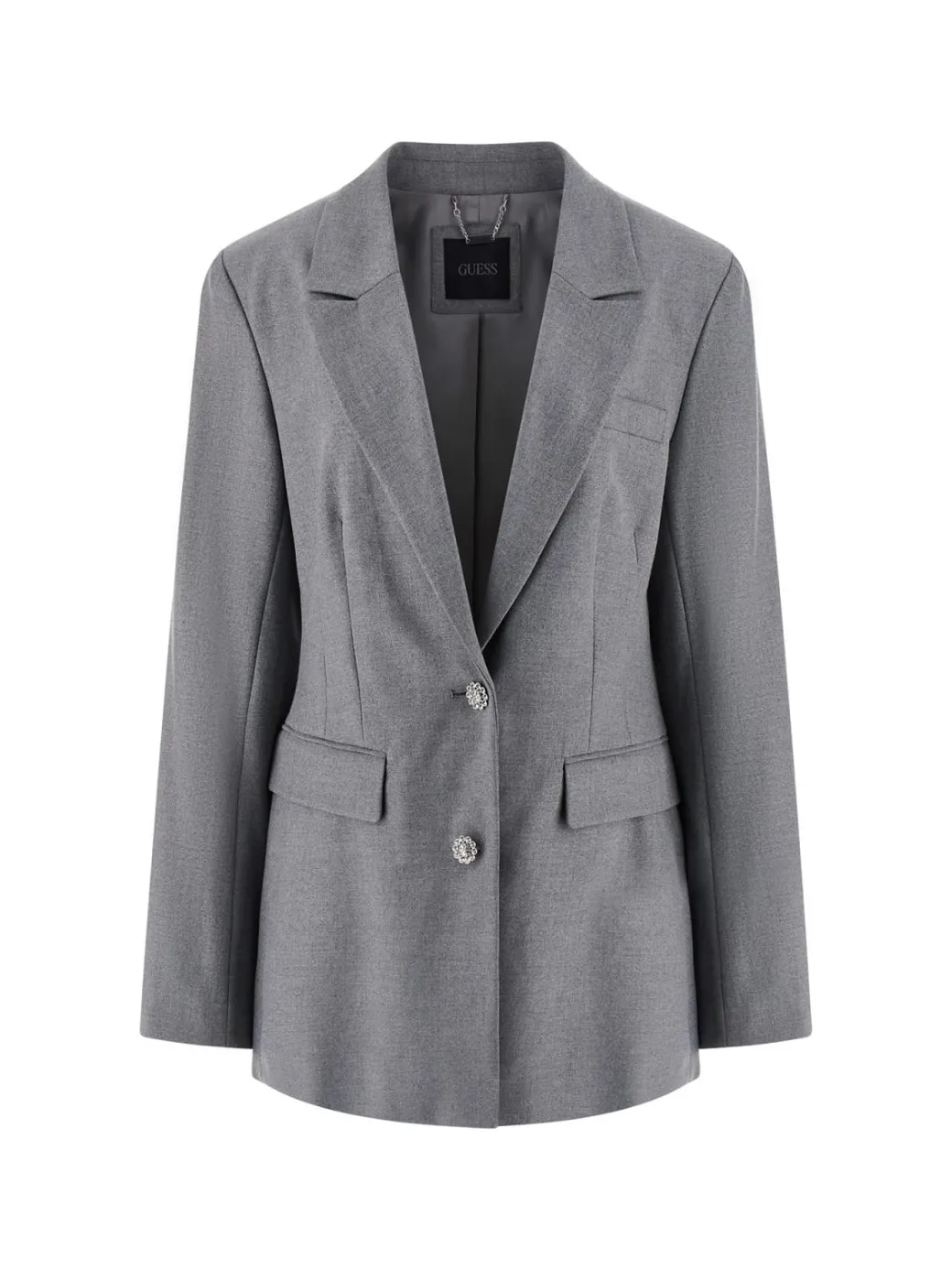 Giacca Guess con linee eleganti e chiusura monopetto per dare un tocco sofisticato ai tuoi look. Design sfiancato con tasche laterali e bottoni gioiello (che ritornano anche sulle maniche), la puoi anche abbinare ai pantaloni Doris dello stesso brand per creare un completo minimal ed elegante per i tuoi eventi di stagione.