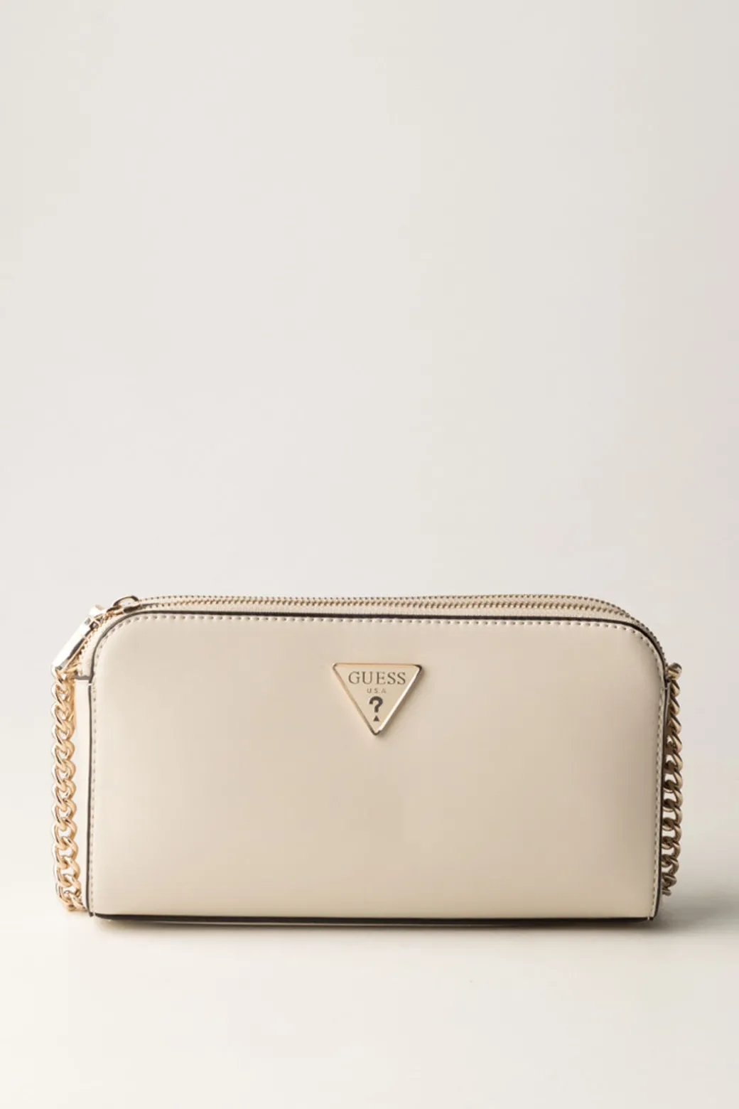 Un accessorio per completare outfit da sera con una nota minimal e glam: mini borsa a tracolla Guess, modello Daryna, caratterizzata da rivestimento in materiale sintetico effetto pelle su cui spicca la placca logo del brand e la tracolla a catena con spallaccio in ecopelle. Elegante o casual? Si presta ad essere qullo che desideri!
