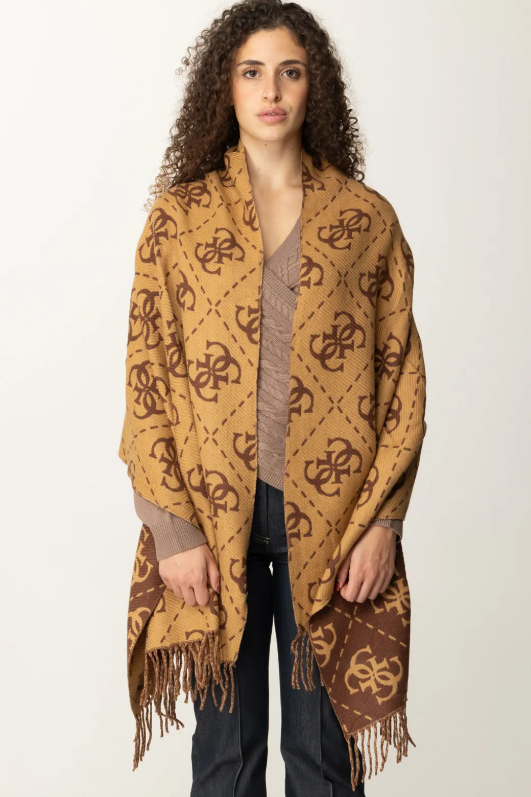 Decorata con l’inconfondibile logo su tutto il tessuto e impreziosita da frange decorative alle estremità, questa sciapra Guess aggiunge un tocco sofisticato e moderno ai tuoi look invernali. Ideale per completare outfit casual o formali con un dettaglio distintivo.