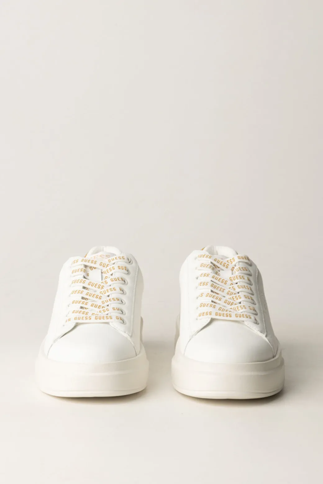 Queste sneakers Guess combinano un design minimalista e dettagli ricercati, come gli strass ne ltallone a contrasto di colore, per uno stile versatile e sofisticato. Realizzate in pelle sintetica, la suola rialzata garantisce comfort per tutta la giornata, mentre il logo Guess in rilievo sottolinea la qualità e l’esclusività del brand. Perfette sia per outfit casual che per aggiungere un tocco sportivo-chic al tuo look.