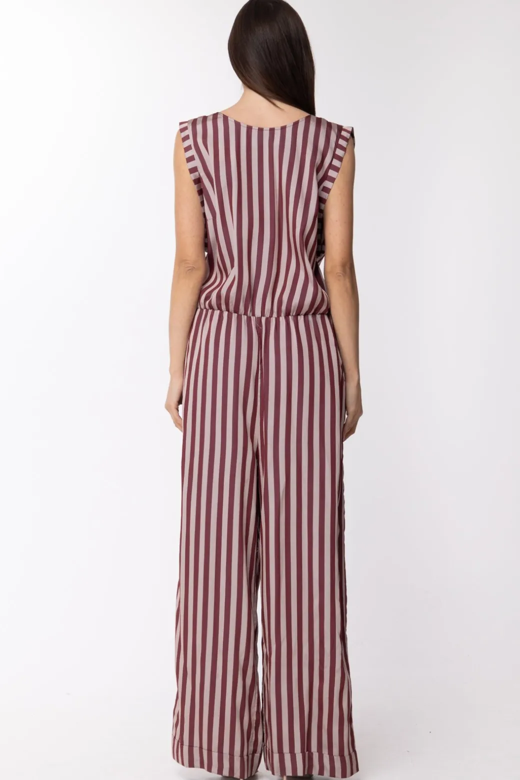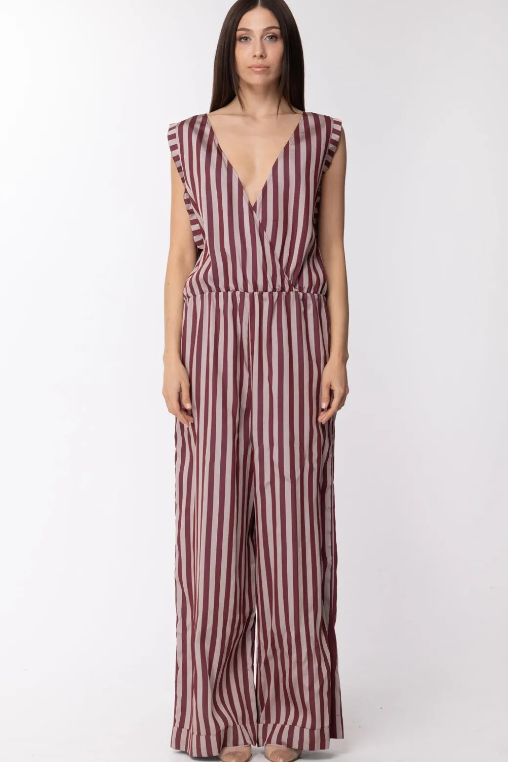 Una tuta dal design essenziale, che risulta pratica e versatile: modello lungo e smanicato, caratterizzato da una vestibilità scivolata, un ampio scollo ad incrocio e una stampa a righe sempre attuale. Abbinala ad un paio di tacchi per sfoggiare un outfit casual chic comodo e al tempo stesso stiloso.