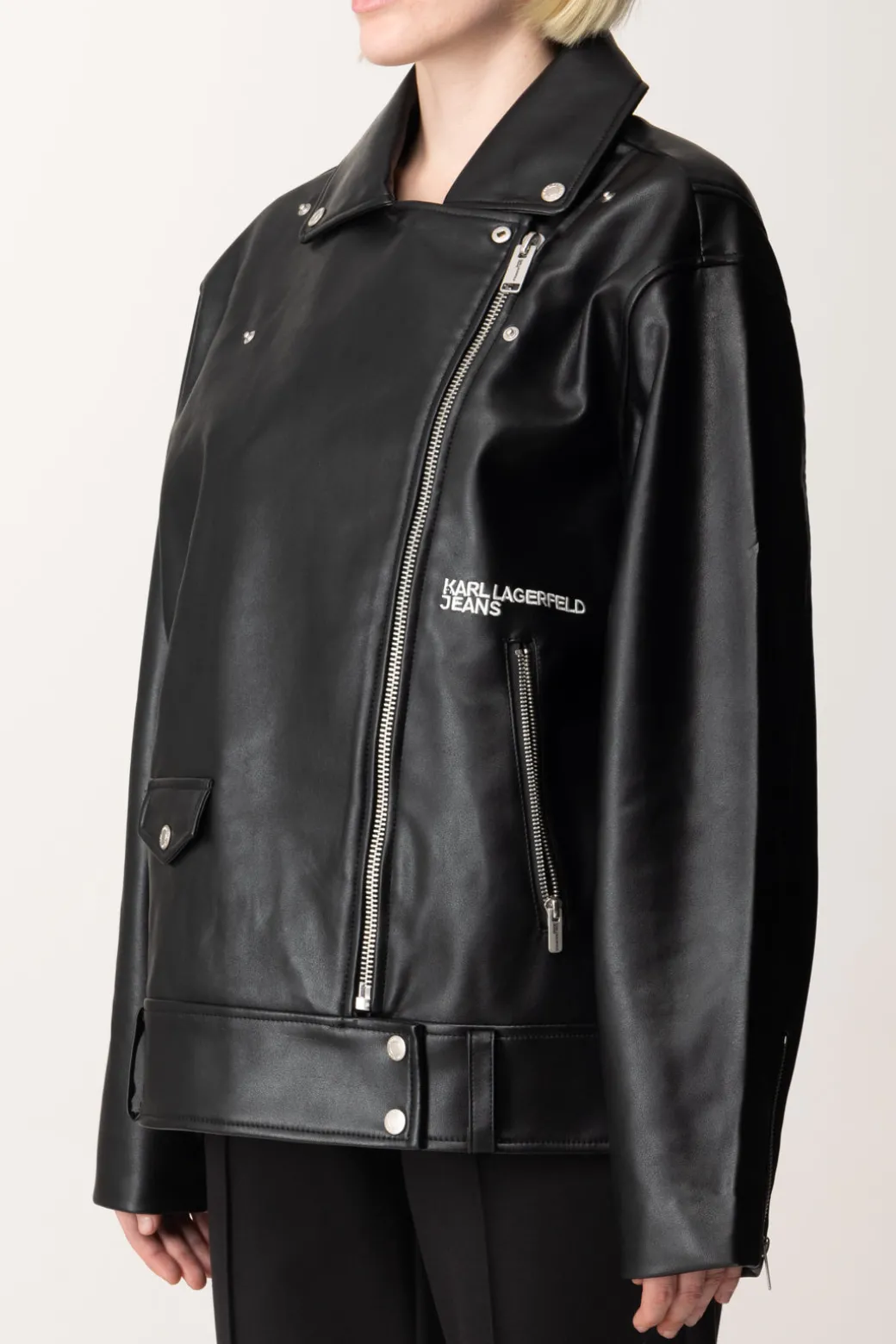 Questa Giacca Biker Karl Lagerfeld è un must-have per chi cerca un capo grintoso e versatile. La finitura lucida e i dettagli metallici aggiungono un tocco edgy, mentre la vestibilità rilassata la rende ideale per outfit stratificati. Indossala con skinny jeans e stivaletti per un look rock, oppure con un vestito lungo per un effetto high-low di grande impatto.