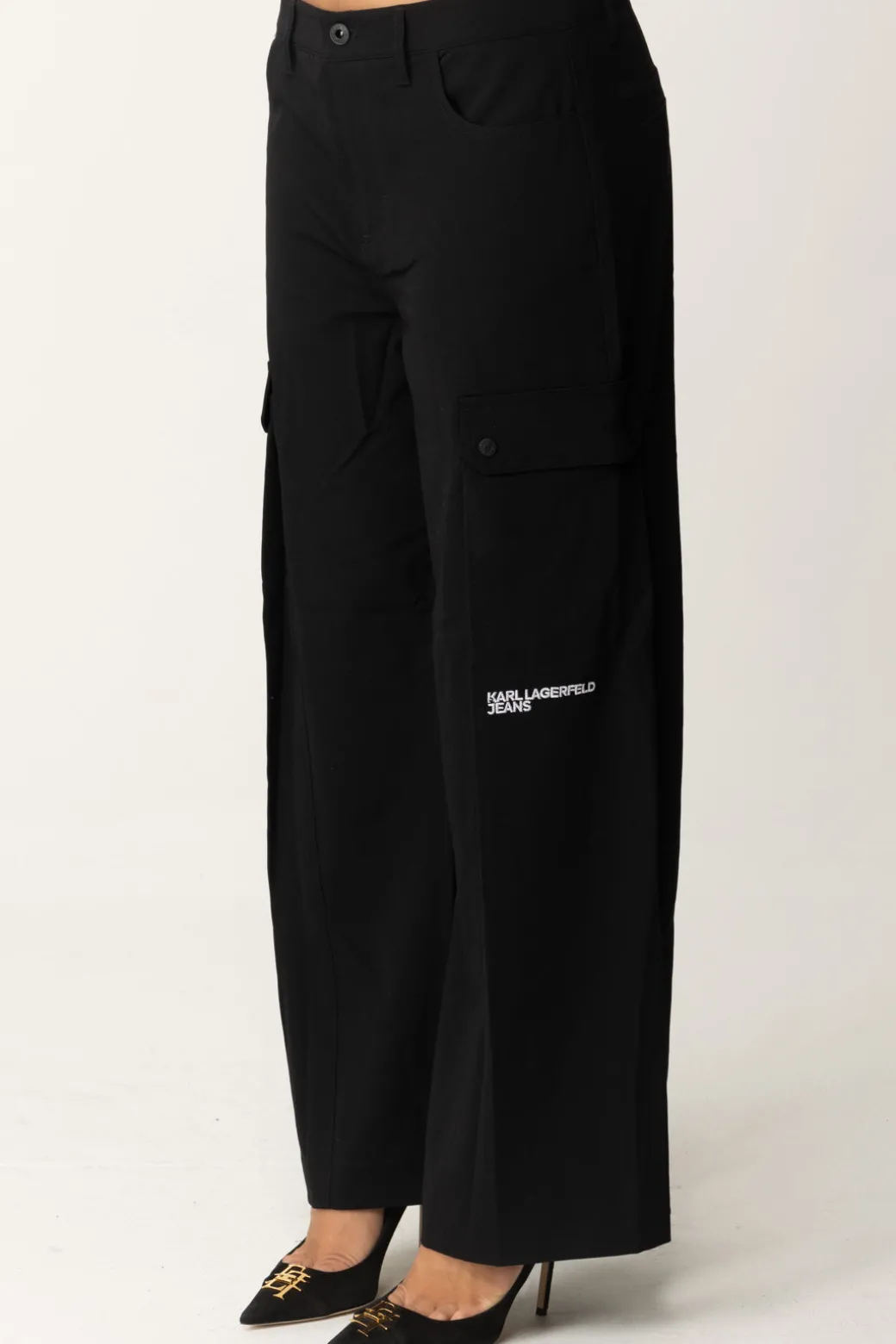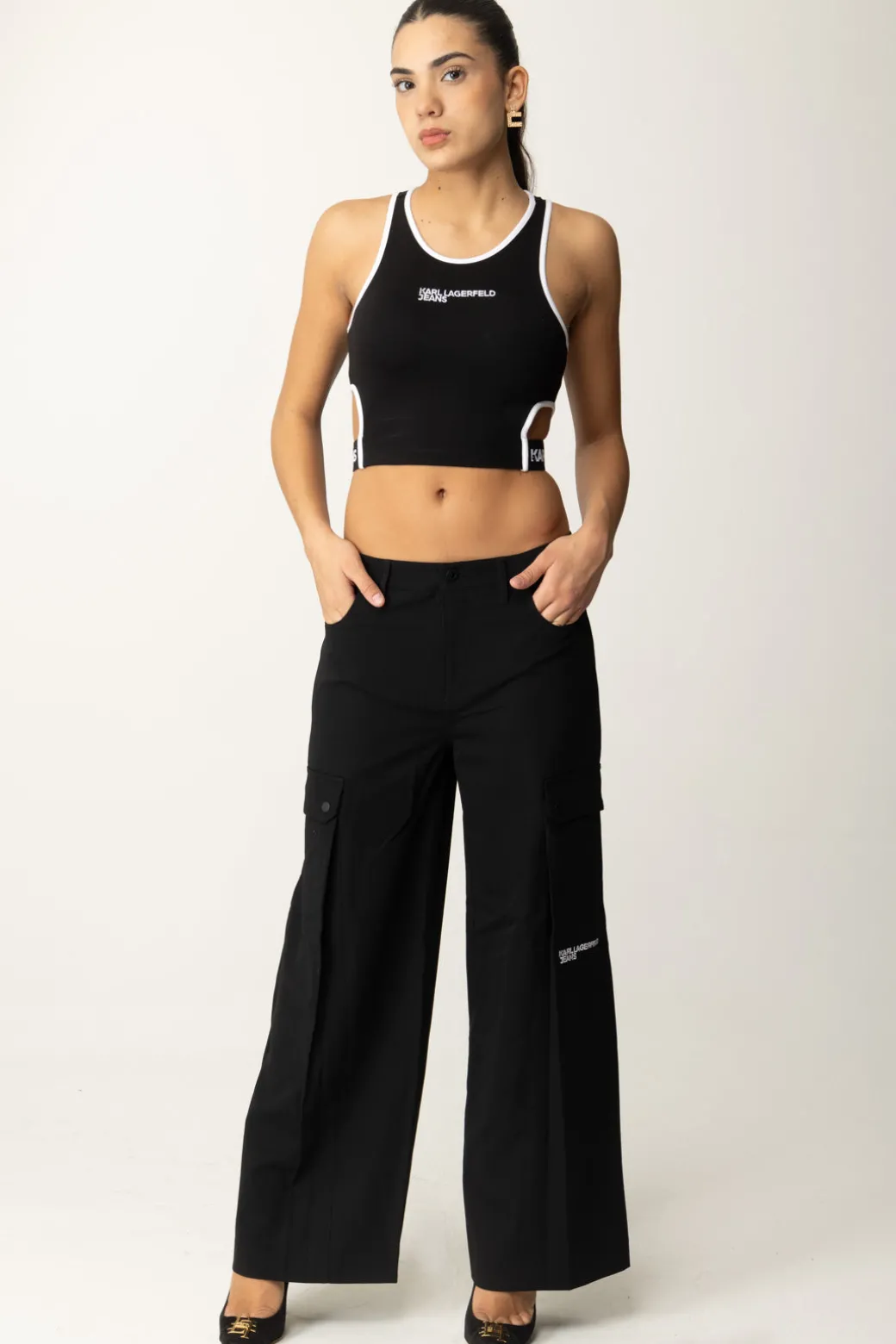 Questi jogger cargo Karl Lagerfeld sono un perfetto mix di comfort e funzionalità. Con le loro tasche laterali profonde e taglio ampio, sono ideali per un look casual-chic. Abbinali con un crop top e delle sneakers chunky per un outfit urban.