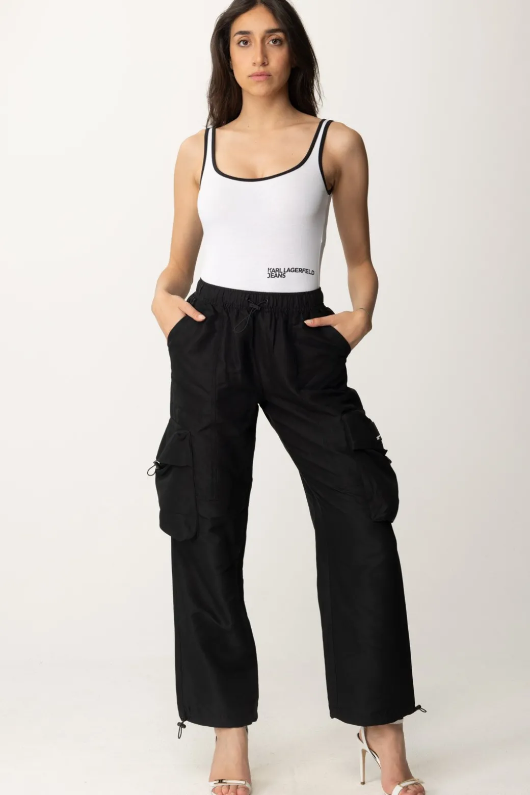 Pensati per chi ama lo stile trendy e sportivo: questi pantaloni cargo Karl Lagerfeld entreranno subito a far parte dei tuoi capi daily preferiti. Realizzati in tessuto morbido, con elastico in vita e sulle caviglie, completo da maxi tasche laterale per trasmettere il massimo delle vibes urbane.