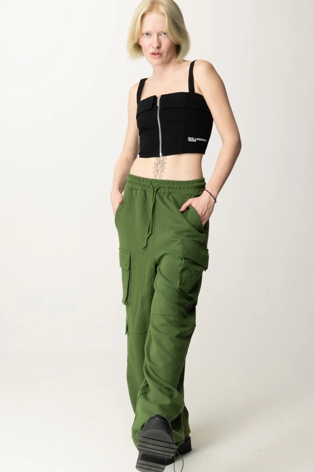Questo top Karl Lagerfeld dal taglio strutturato è caratterizzato da una chiusura frontale con zip, spalline ampie che donano un tocco grintoso e il logo lattering su un lato. Perfetto per outfit dal mood spoty-chic, può essere abbinato a pantaloni cargo per un look streetwear da completare con chunky sneakers o ankle boots per un appeal edgy.