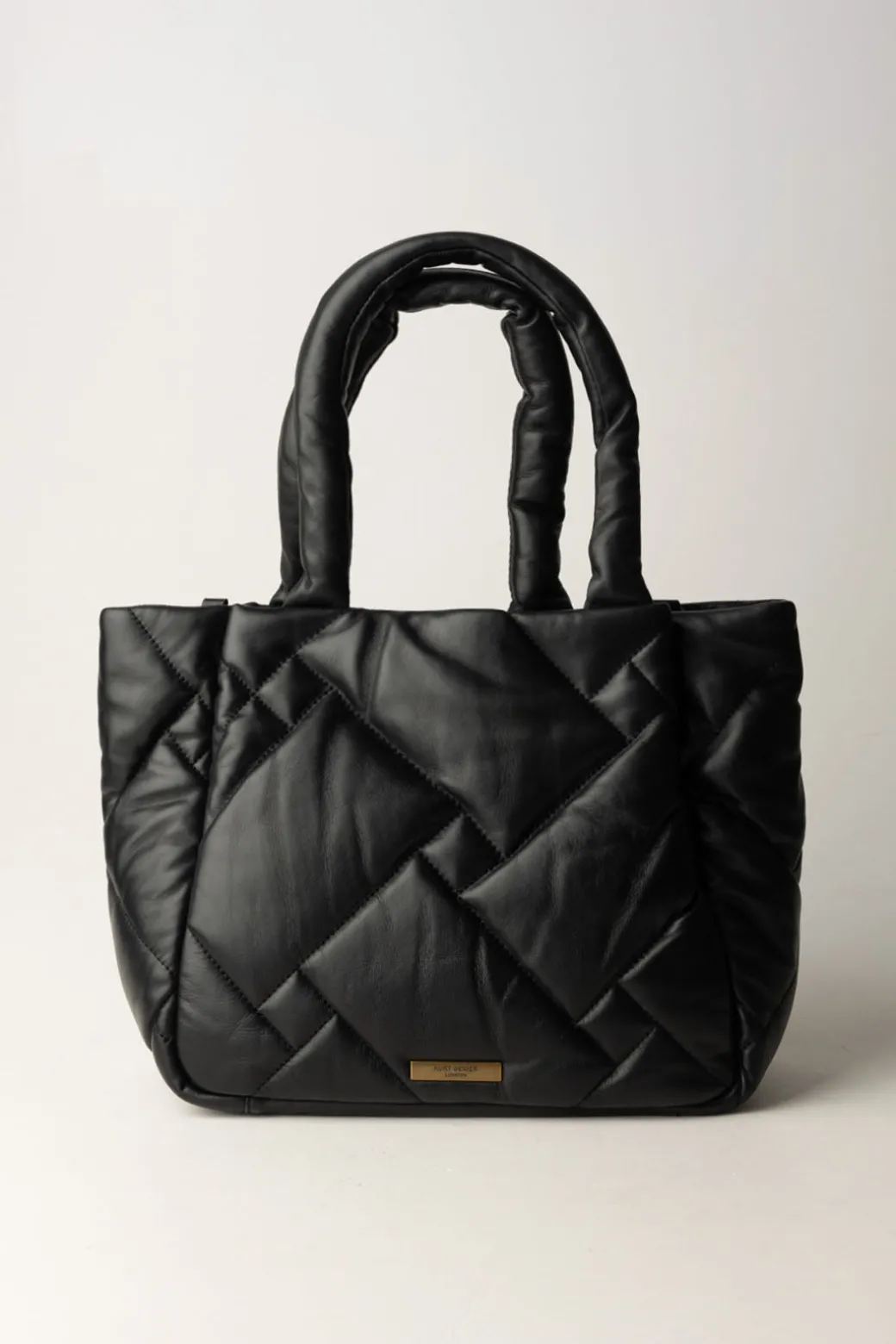 Una borsa shopper Kurt Geiger spaziosa e soffice, con una silhouette moderna e trapuntata. Il dettaglio logo frontale aggiunge un accento di eleganza e luce. Perfetta per outfit casual-chic, indossala con un cappotto oversize e stivali chunky per un look invernale sofisticato.