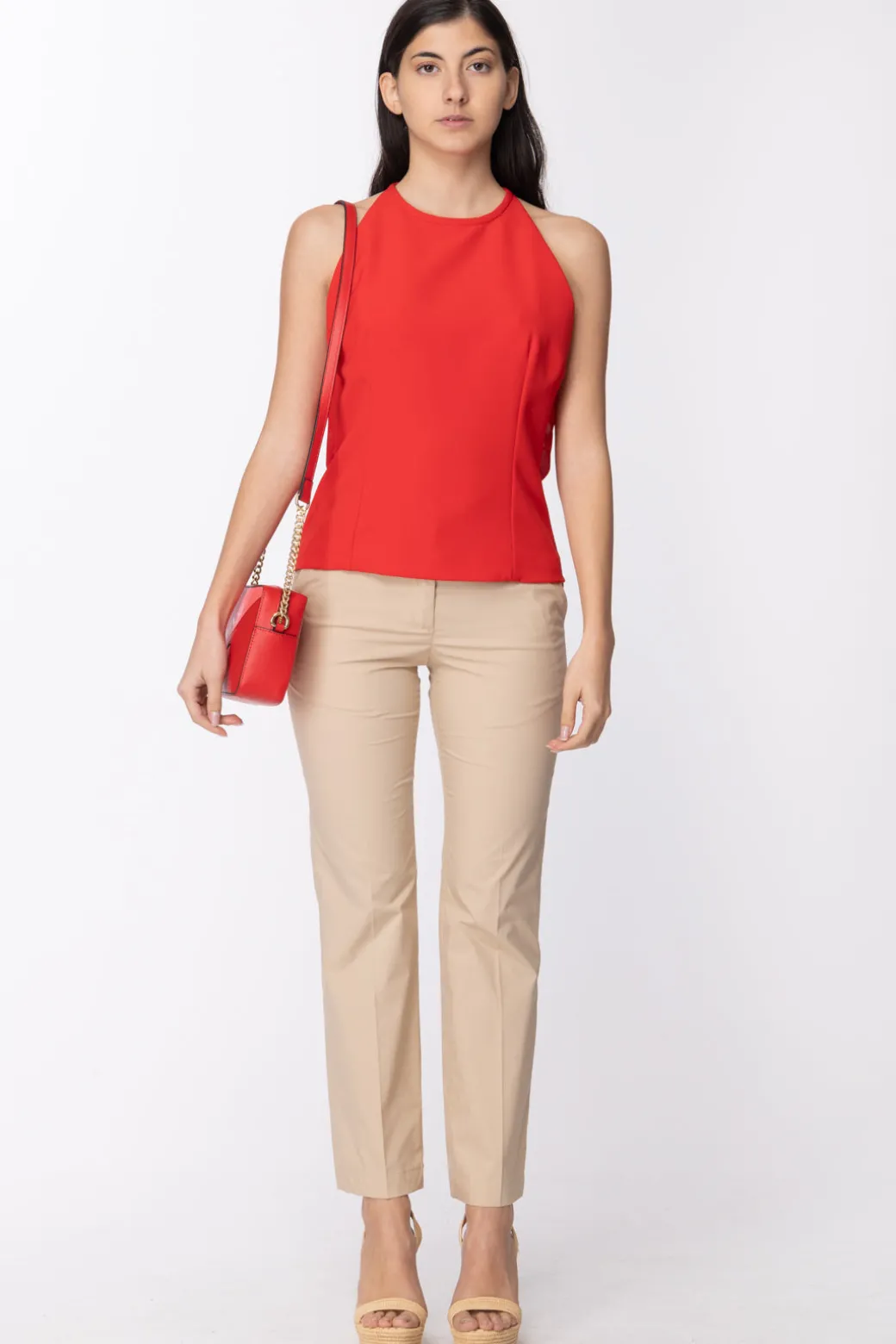 Mangano Mangano: Top Bay Top Slim Fit In Tessuto Tecnico Da Confezione con Scollo All’americanaROSSO