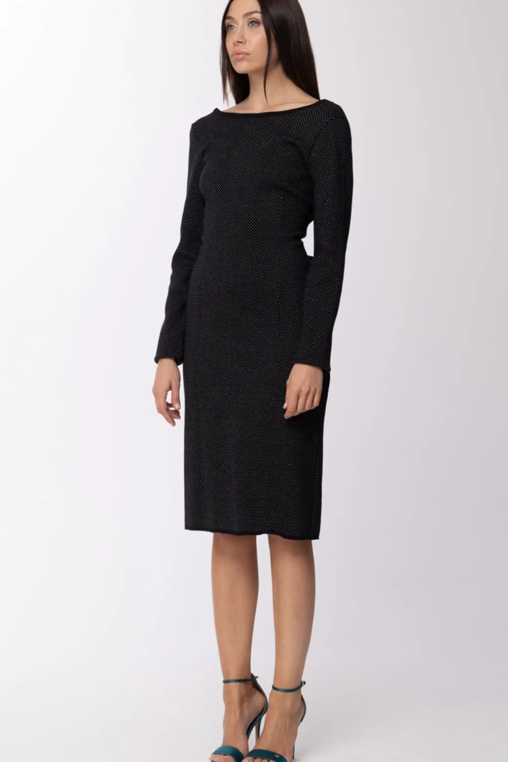 Manila Grace Abito Jacquar In Maglia Scollato Dietro con Zip VisibileNERO