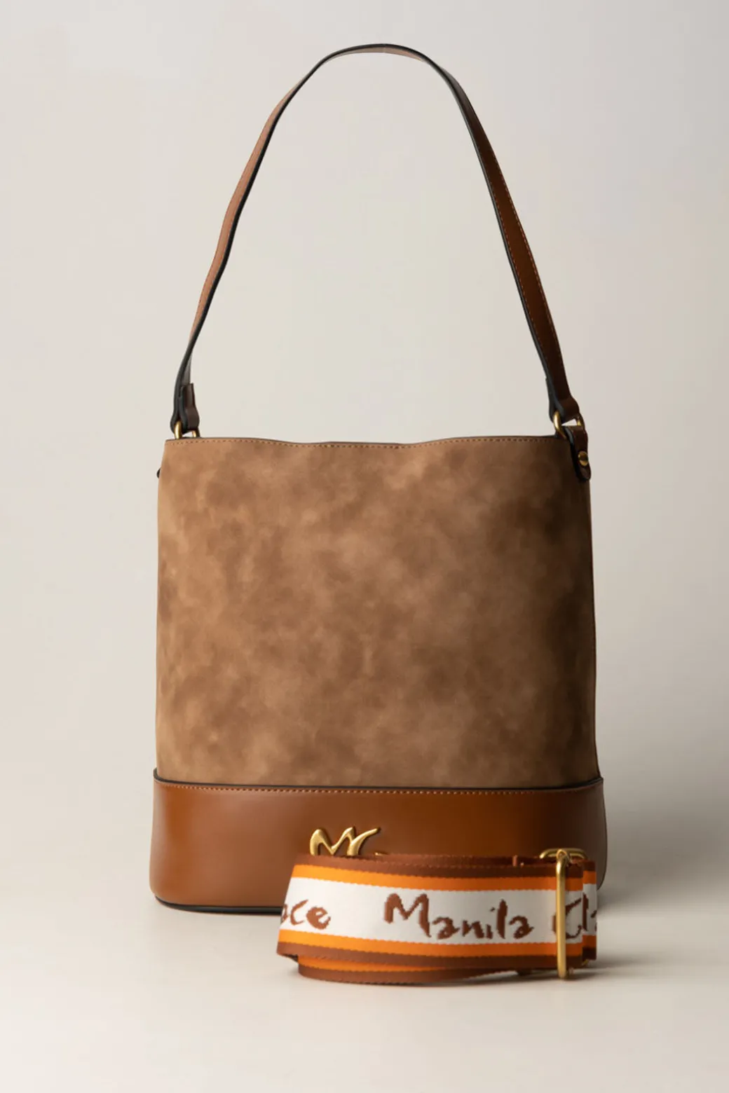 La puoi indossare a saplla, ma puoi anche portarla a tracolla grazie all’accessorio logato in grosgrain che puoi agganciare all’occorrenza: questa borsa Manila Grace si presenta versatile ma soprattutto pratica, perfetta per completare i tuoi outfit più quotidiani. Rivestita in materiale sintetico scamosciato, ad eccezione della base in ecopelle liscia con logo MG in oro: un perfetto mix di ricercatezza e semplicità per i tuoi look di stagione.