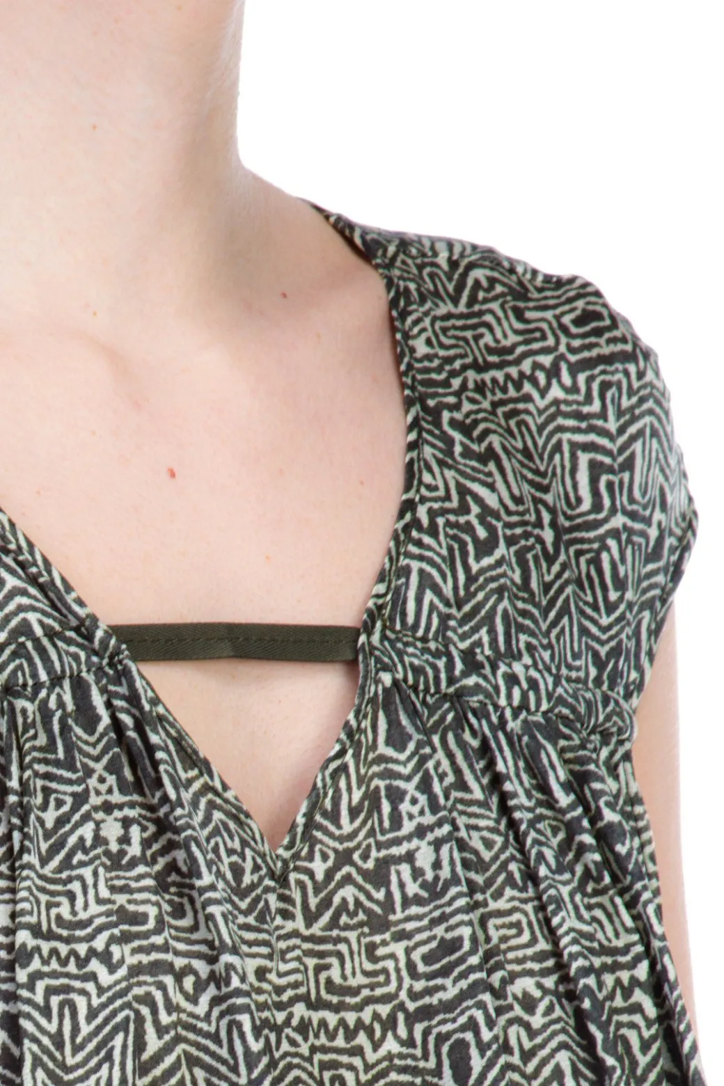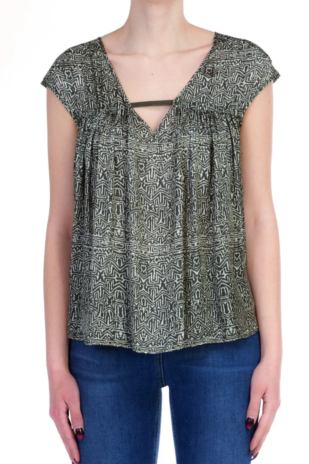 Manila Grace Casacca In Seta Scollo a V Stampa Etnica Vestibilita’ MorbidaMILITARE