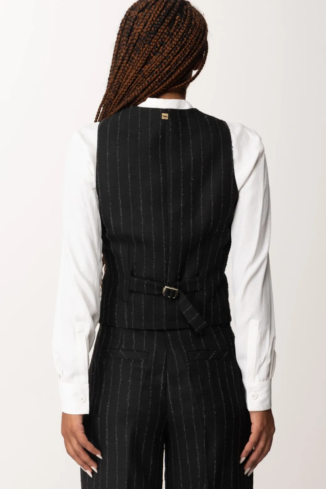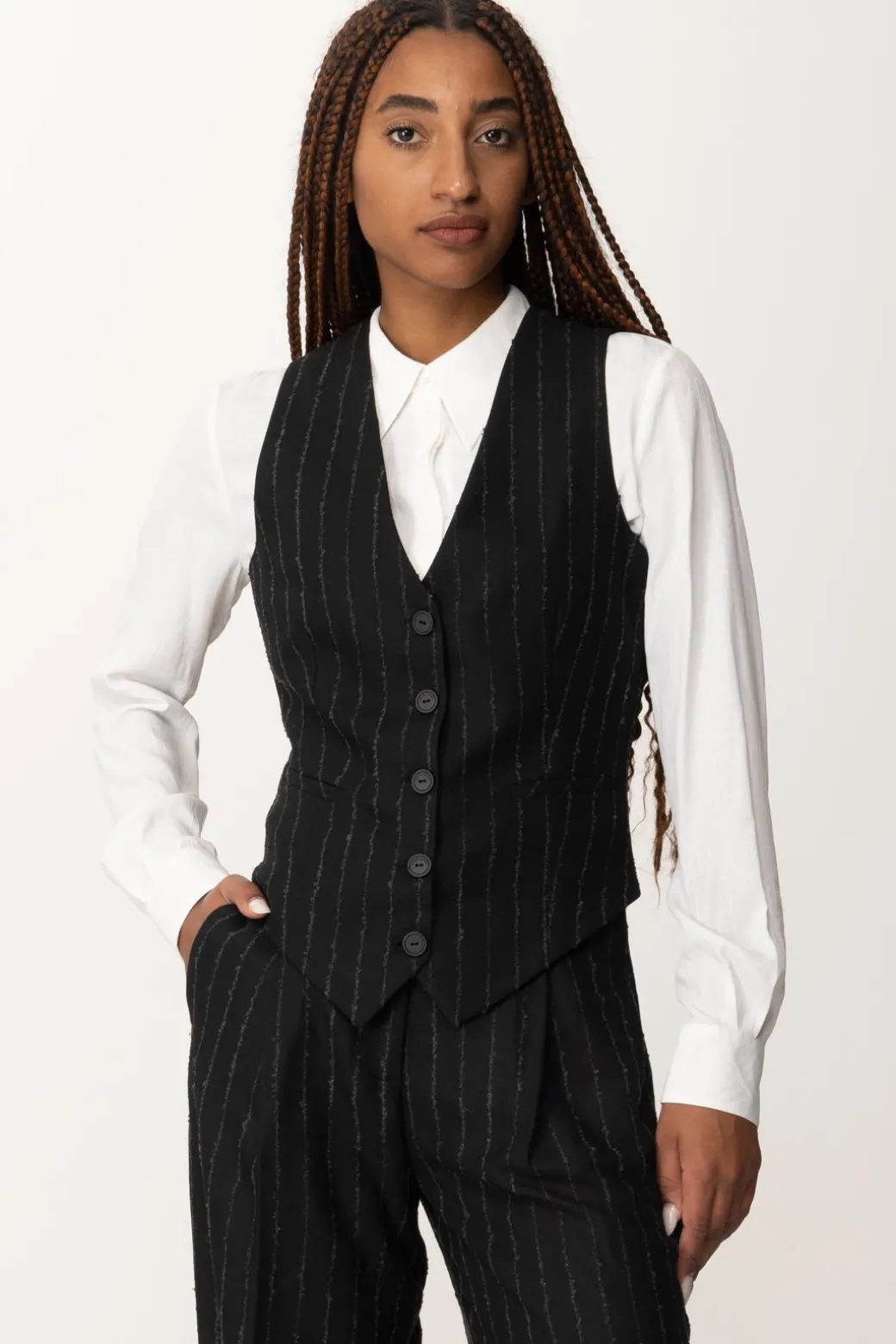 Linee aderenti e righe verticali che sagomano anche otticamente la silhouette: questo gilet Manila Grace è un tocco di stile che schiaccia l’occhio al guardaroba maschile ma con esiti super femminili! Provalo con il suo pantalone o divertiti a inventare tanti altri nuovi outfit in cui includere un pezzo così irresistibile.