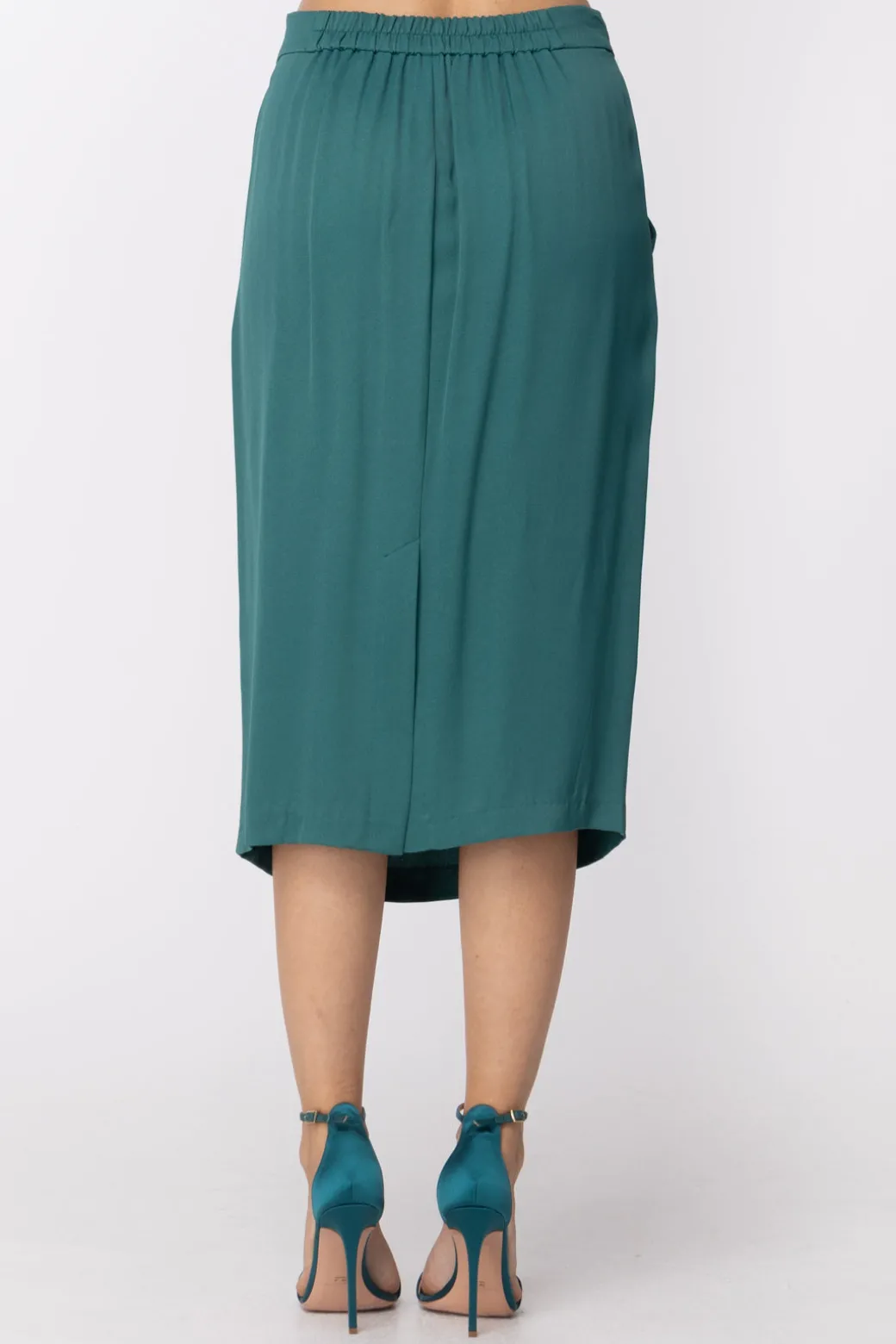 Una gonna dal design versatile, che ti permette di abbinarla ai più svariati look, da quelli formali a quelli più casual chic. Caratterizzata da un taglio midi, con cinturino elasticizzato che definisce il punto vita e spacco sul retro.