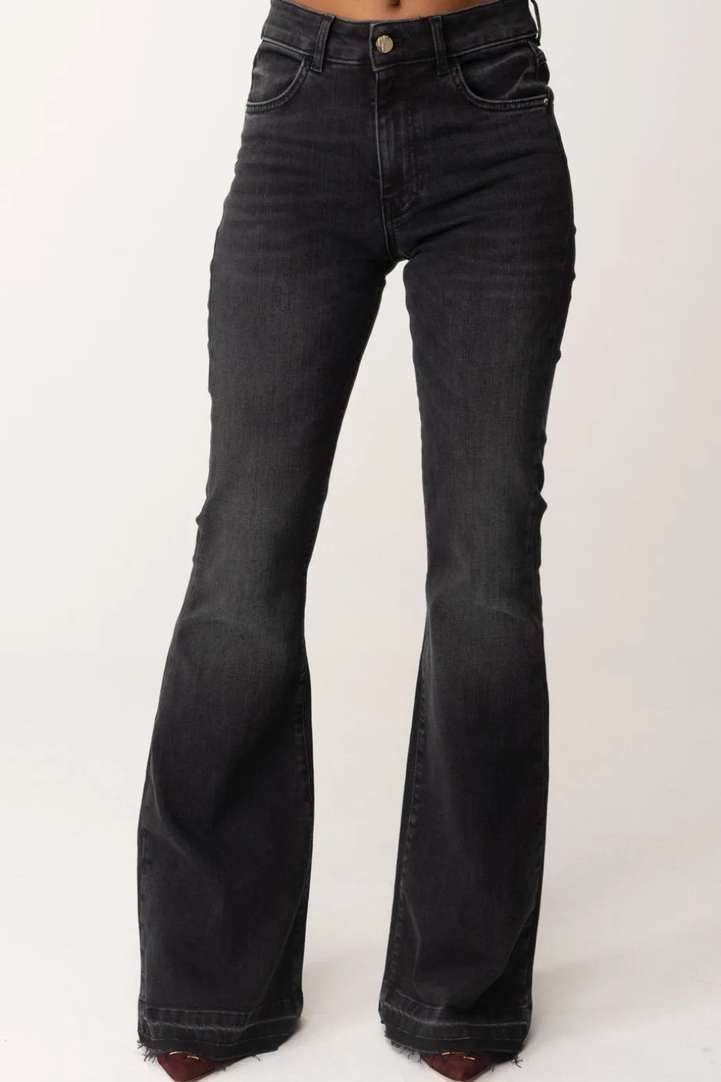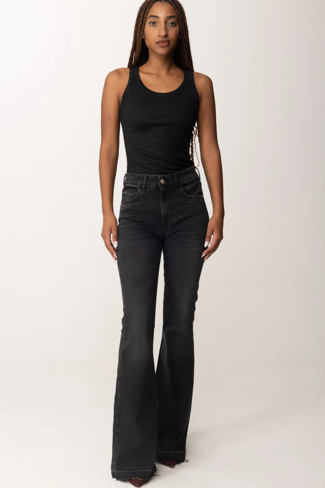 Un jeans Manila Grace cinque tasche, disponibile in due varianti colore ma che desidererai avere entrambe! Vita alta, fit impeccabile e modello a zampa, un capo basic che sarà una risorsa per i tuoi outfit di stagione h24. Etichetta con logo a contrasto sul retro.