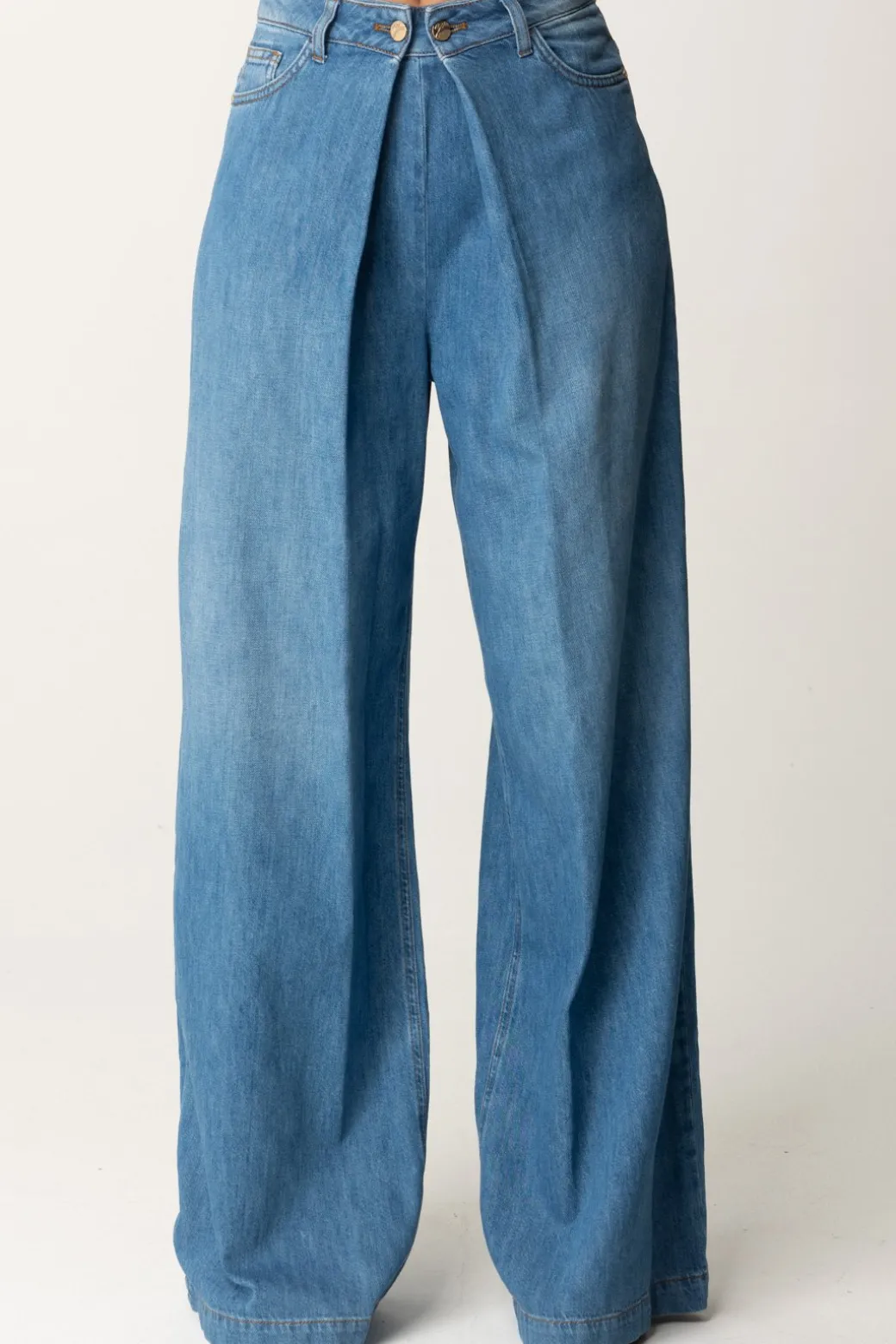 Manila Grace Jeans Wide Leg con PiegheMEDIUM BLUE