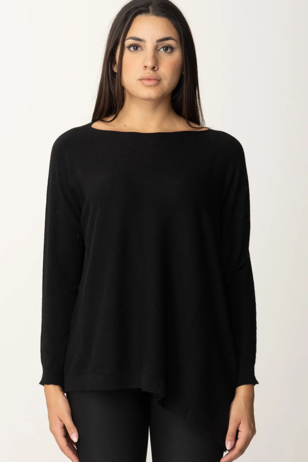 Se ami le vestibilità oversize e i tagli un po’ sopra le righe, allora devi assolutamente provare questa maglia poncho Manila Grace, con fondo asimmetrico e scollo a barca. È realizzata in misto viscosa con orli a costine ed ha una fit super comfort che ti permette di indossarla anche su altre maglie, o di giocare con i volumi dei tuoi outfit di stagione.