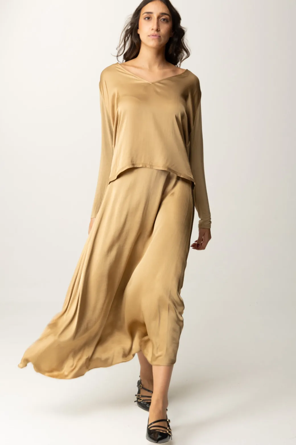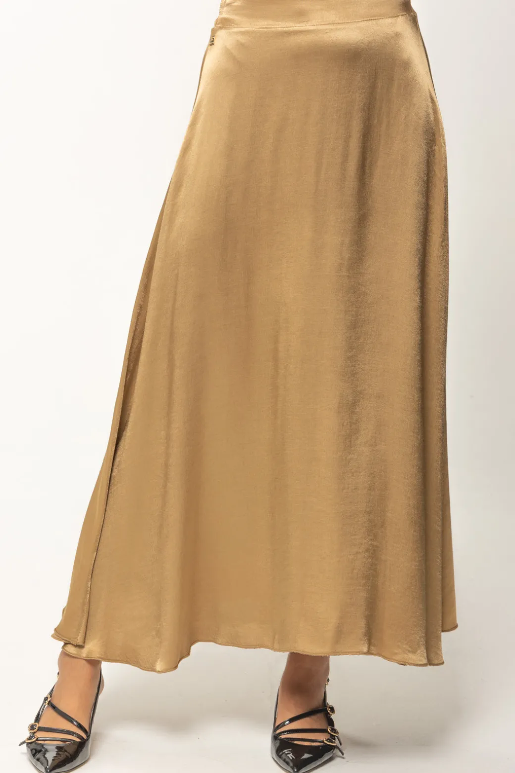 Questa gonna lunga Manila Grace in satin è un vero must per un look elegante ma senza sforzi. La lucentezza del tessuto aggiunge subito un tocco di glamour, perfetto per un evento serale o un aperitivo chic. Abbinala con un top cropped nero e dei sandali con tacco per slanciare la figura. Se vuoi dare un twist più casual, indossala con una t-shirt bianca e sneakers chunky. Una mini borsa a tracolla completerà il look, super trendy!