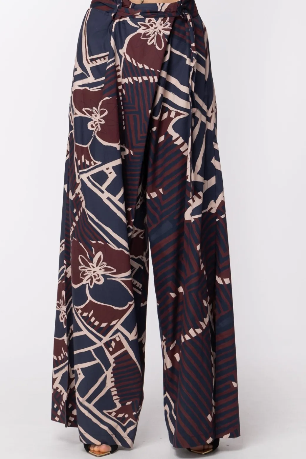 Manila Grace Pantalone a Fantasia Geometrica con FusciaccaBLU NAVY
