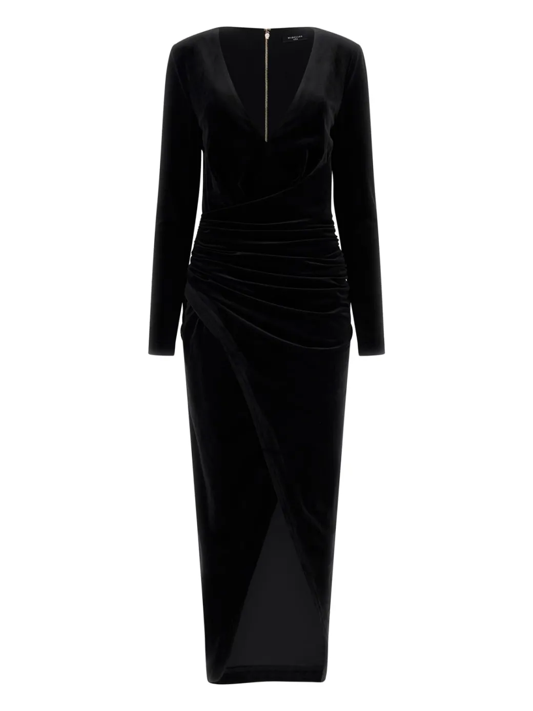 Eleganza da diva, fascino senza tempo: strepitoso abito lungo Marciano Guess realizzato in velluto e sagomato perfettamente sulla silhouette, che non manca di gratificare grazie alla scollatura a v, al drappeggio ai fianchi e al profondo spacco frontale. Una mise da sera femminile e da protagonista, da completare con i tocchi di luce dei tuoi bijoux.