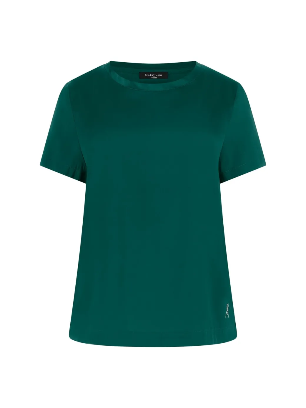 Anche un capo basico può lasciare il segno, come nel caso di questa delicata blusa Marciano Guess realizzata in seta con una resa luminosa del tessuto, scollatura girocollo e maniche corte. Un top in grado di ingentilire qualsiasi mise, perfetto anche come sottogiacca, versatile e discreto nel suo essere estremamente elegante.