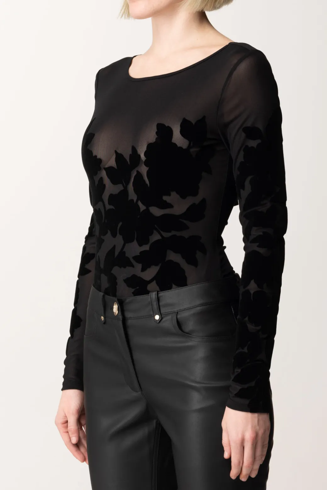 Sensualità e rattinatezza perfettamente bilanciati in questo body Guess, con la sua trama floreale in velluto che crea un effetto vedo-non vedo applicata al tulle con cui è realizzato. Indossalo come il più sorprendente dei sottogiacca, o ancora in abbinamento a capi glamour per le tue night out, o super chic per una serata romantica e un risultato iperfemminile.