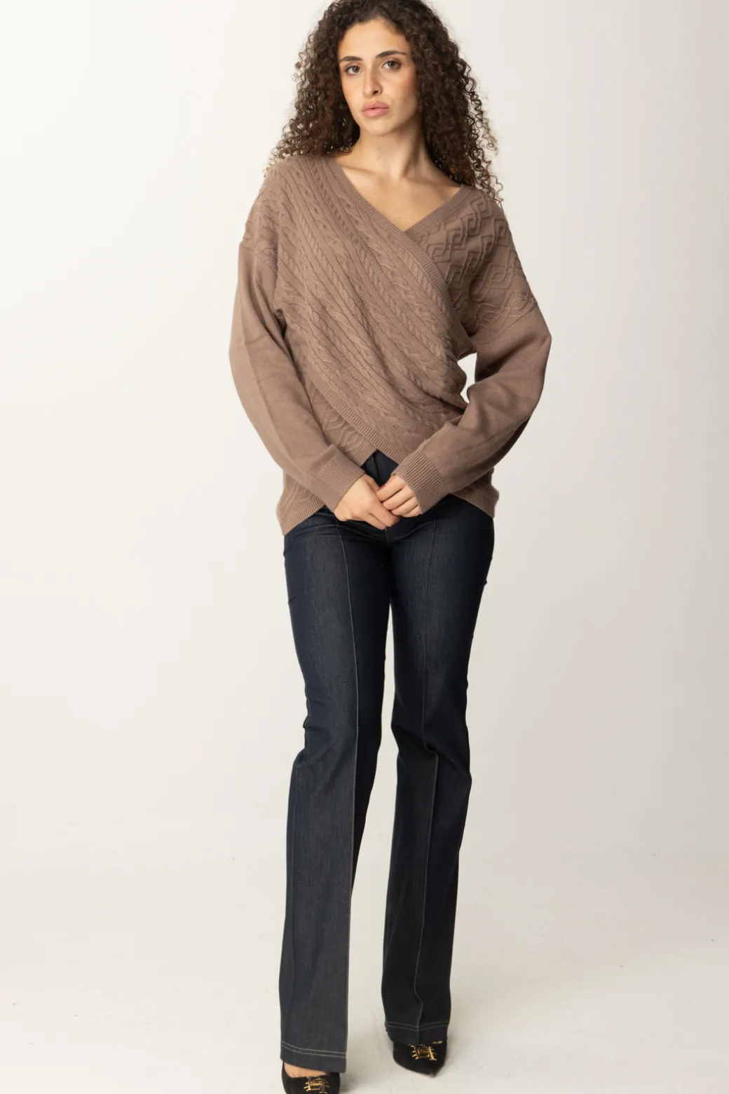 Il maglione Marciano Guess dal design a incrocio, presenta un intrigante pattern intrecciato, perfetto per creare volumi e giochi di texture nel tuo look. Ideale con jeans slim-fit o gonne a vita alta, questo capo unisce comfort e raffinatezza.