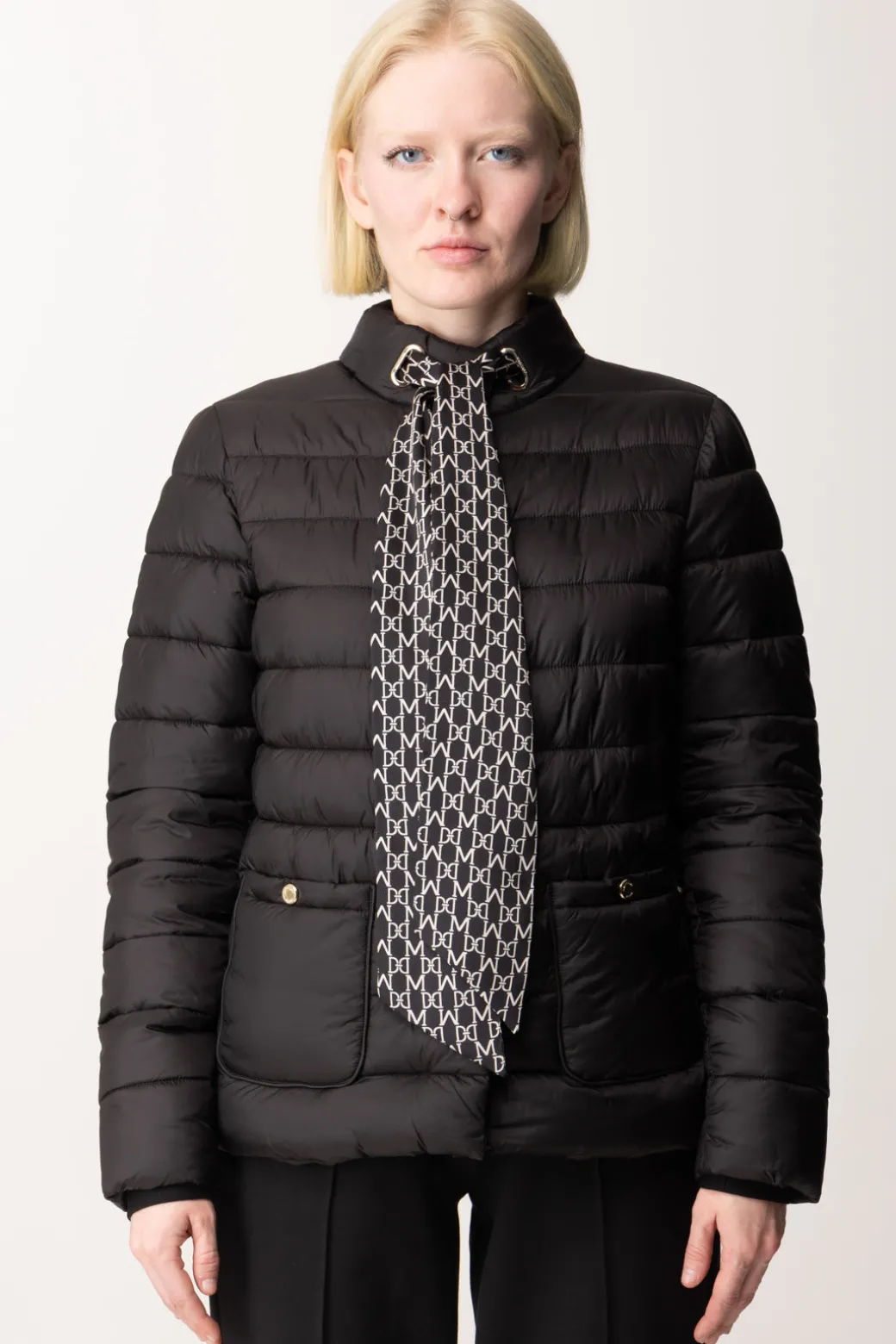 Un tocco di grazia per ingentilire le linee urban di questo piumino corto Marciano Guess: il bel foulard logato di cui è corredato il colletto, da infiocchettare come più ti piace per personalizzare i tuoi look da stagione fredda. Imbottitura non voluminosa e abbottonatura centrale nascosta, un capo perfetto per i tuoi outfit quotidiani e da tempo libero, con un tocco chic in più.