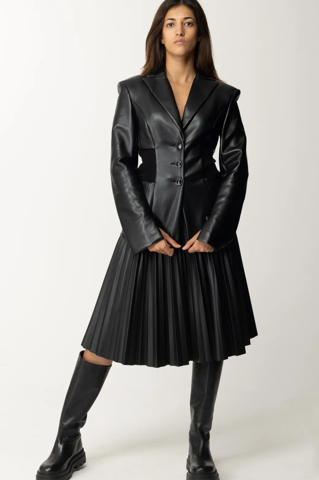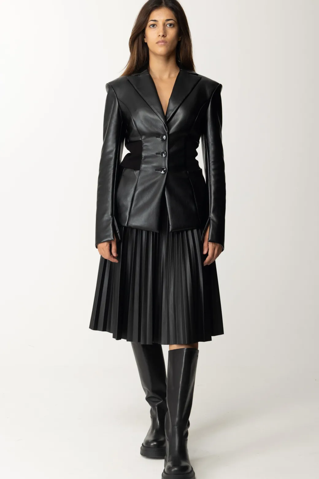 Marco Bologna Gonna In Pelle PlissettataBLACK
