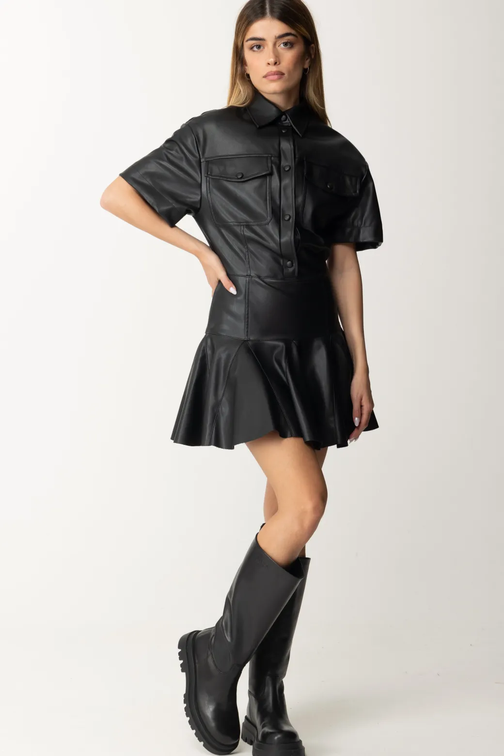 Marco Bologna Mini Abito Chemisier Effetto PelleBLACK