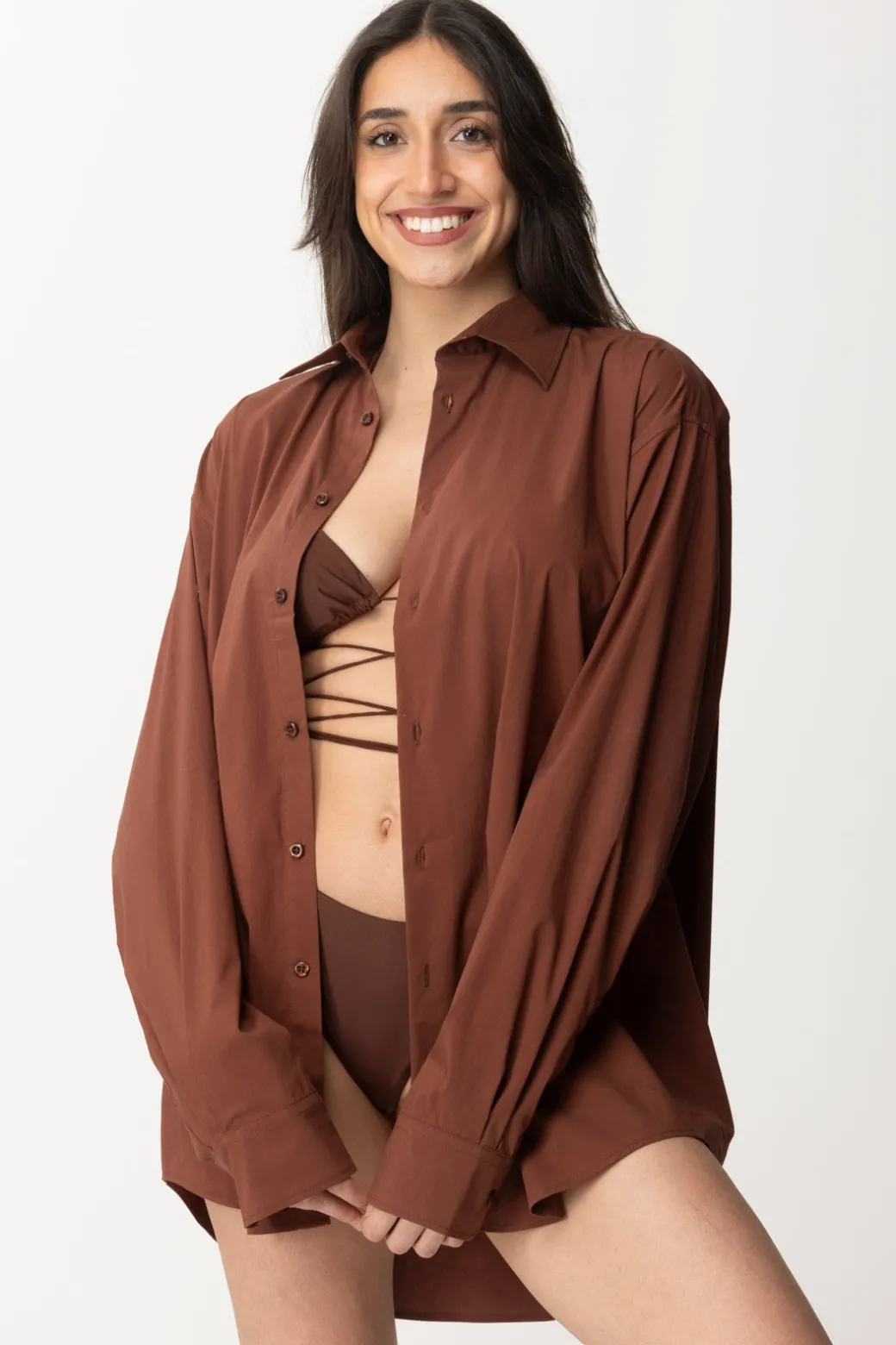 L’accoppiata perfetta per il tuo bikini o un outfit estivo da sfoggiare in spiaggia o passeggiando lungo le vie della città sul mare: la camicia Mefui realizzata in misto cotone e dal taglio lungo, sarà la perfetta compagna fresca e leggera da abbinare al tuo costume o da sfoggiare da sola.