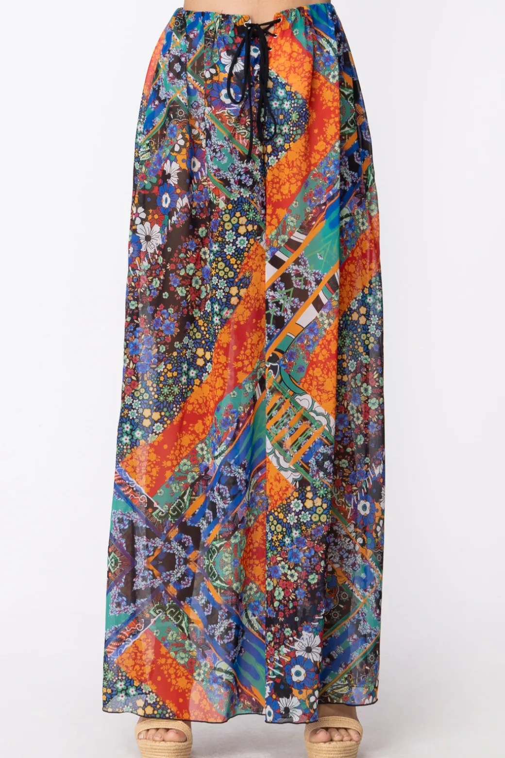 Un capo veloce da indossare sopra il costume o un pantalone sexy per il tuo tempo libero: una proposta Me Fui da sfruttare al massimo, prendendo spunto da ogni colore della stampa su chiffon per i tuoi outfit.