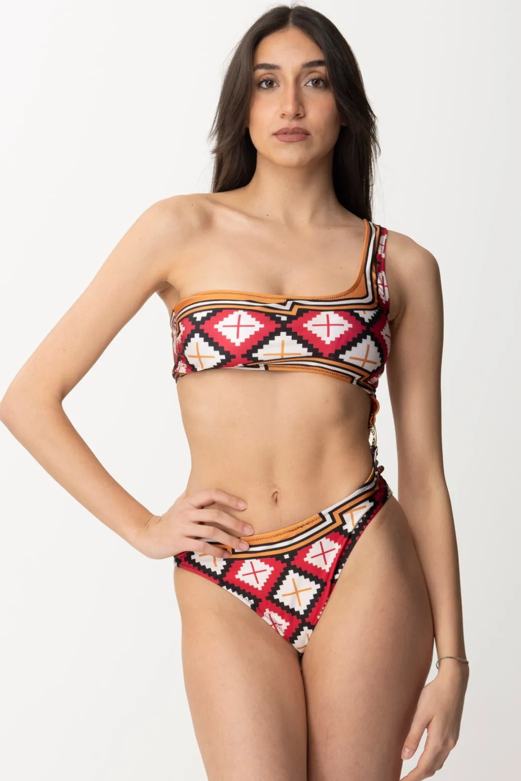 Il costume della tua estate porta un nome, ed è quello del Trikini Mefui: modello monospalla realizzato in lycra lucida con una stampa a fatansia multicolor. Il tocco di stile estivo che ti accompagnerà durante le tue giornate marine!