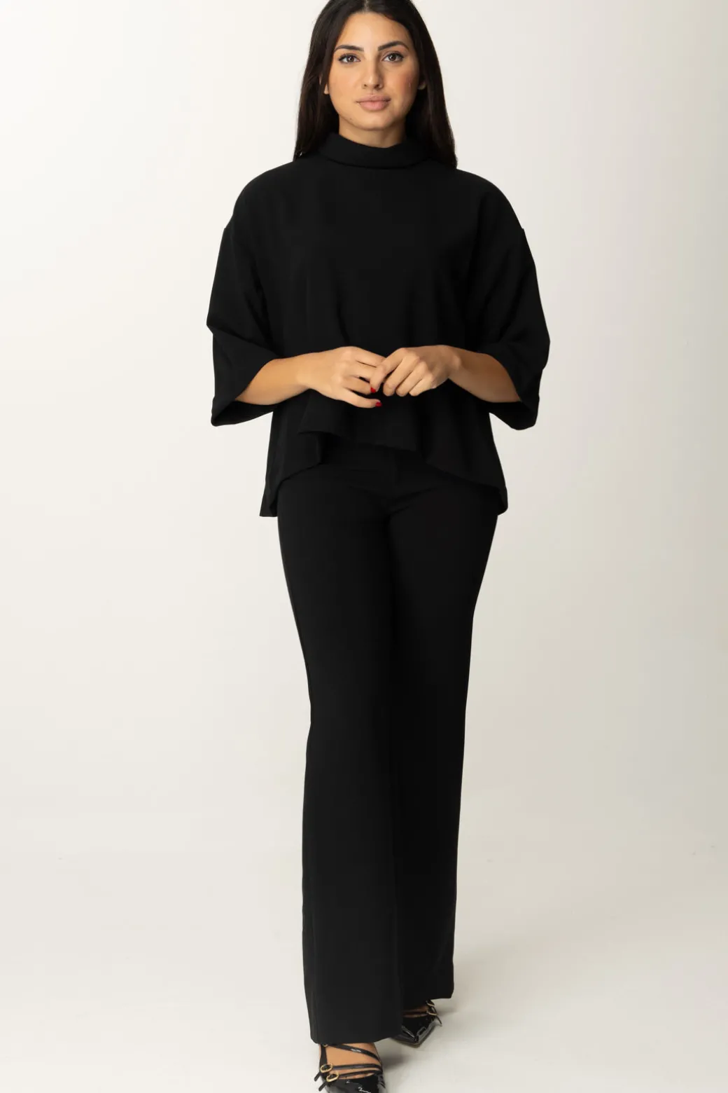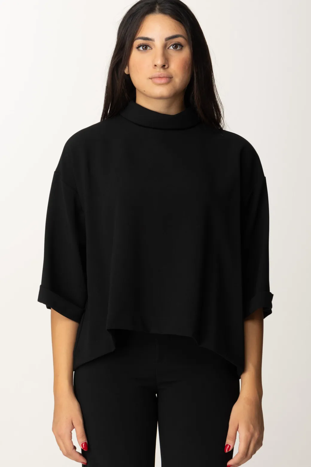 Questa Blusa Meme Road è leggera e ampia, perfetta per un look dal mood comodo e casual. Il collo alto aggiunge un tocco cozy, mentre le maniche ampie donano movimento e volume. Indossalo con pantaloni palazzo per un look moderno o sotto un blazer per uno stile più formale.