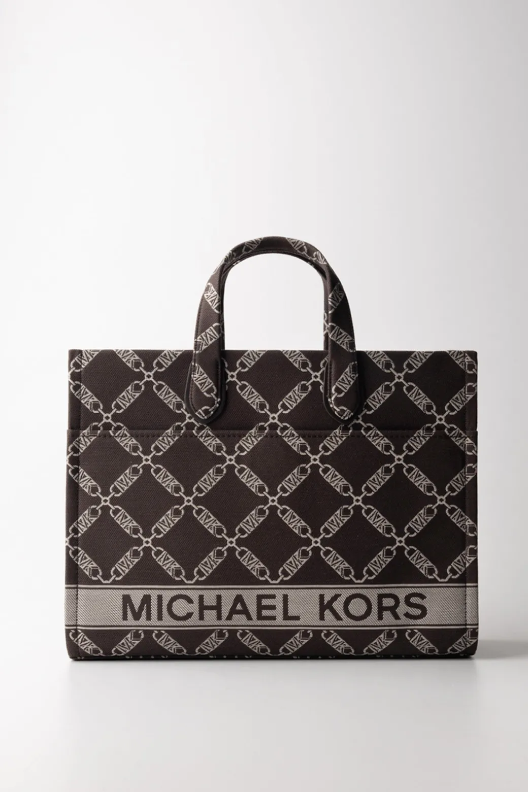 Borsa modello Tote Michael Kors, spaziosa e moderna, impreziosaita da un motivo jacquard a catena con logo lettering a contrasto. Dotata di tracolla removibile per permetterti di indossarla con il massimo della comodità e dello stile!