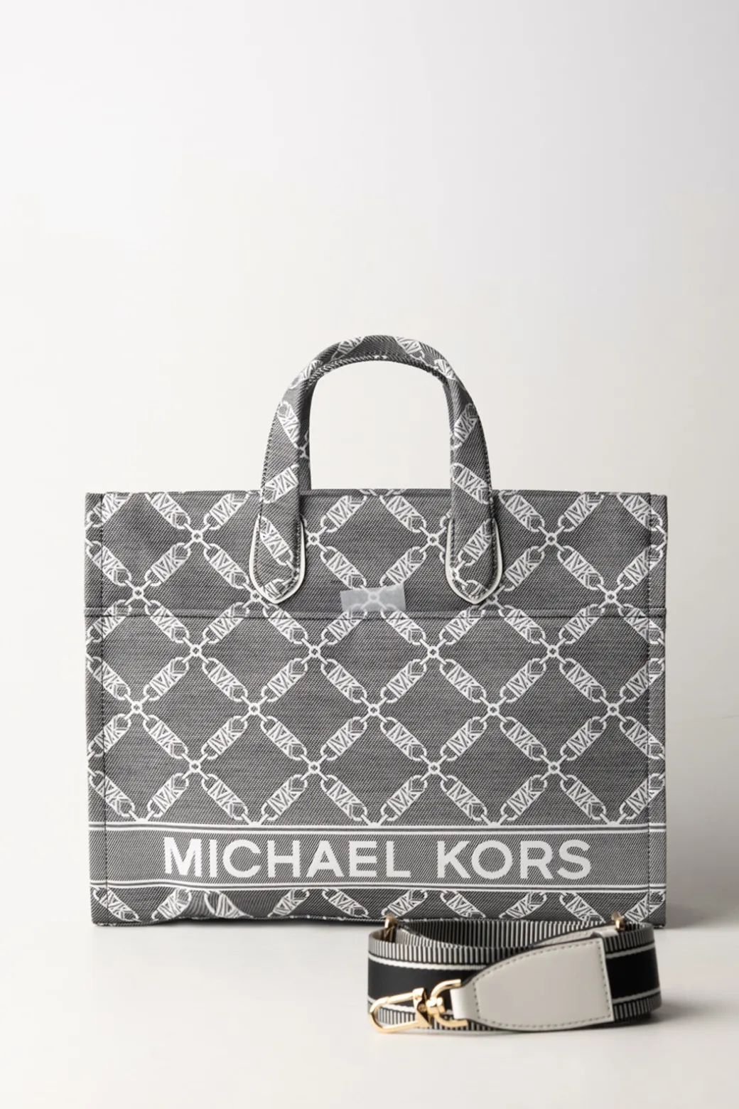 Stile moderno e comodità assicurata, cosa puoi desiderare di più dalla tua borsa? Questa Tote bag Michael Kors sarà la tua nuova compagna di avventure: design rigido e capiente, con un tessuto logato in paglia e tracolla abbinata. Riponi ogni necessità al suo interno e sei pronta per affrontare la città con stile!