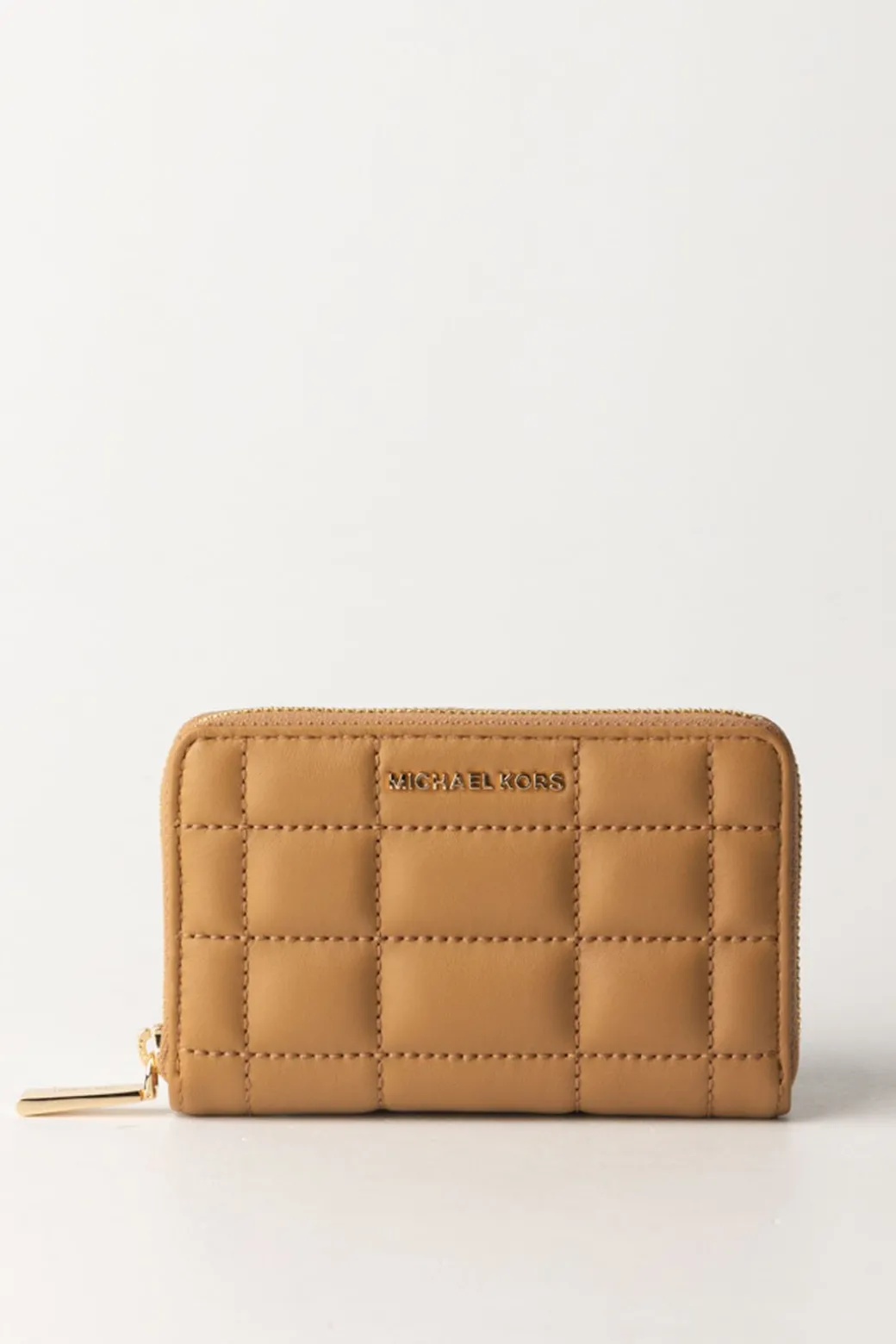 Portafoglio in pelle trapuntata Michael Kors immancabile come accessorio nella tua borsa! La sua silhouette compatta è perfetta per essere custodita con facilità in qualsiasi accessorio, mentre la chiusura con cerniera assicura i tuoi beni con eleganza.
